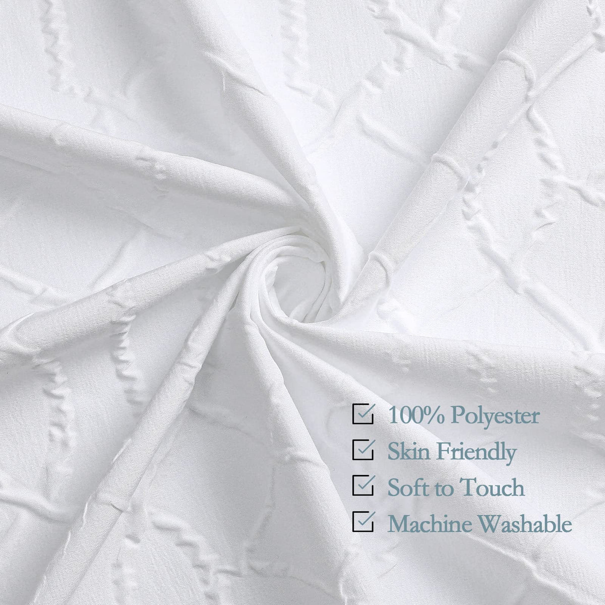 Gibelle Long Shower Curtain 72 X 78, Tall 3D Embossed Textured White Fabric Shower Curtain, Modern Farmhouse Elegant Cloth Bathr