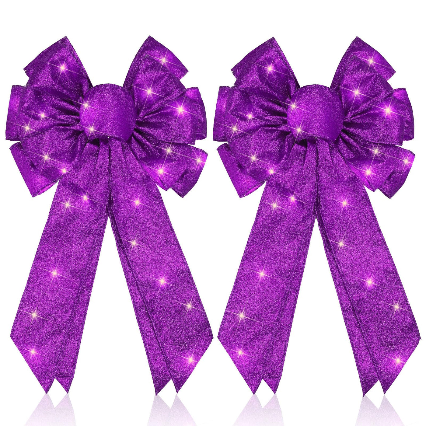 Giegxin 2 Pcs Large Purple Lighted Christmas Bows with Lights for Wreath and Tree Topper, 18x10 Inch Pre Lit Purple Wreath Bow L
