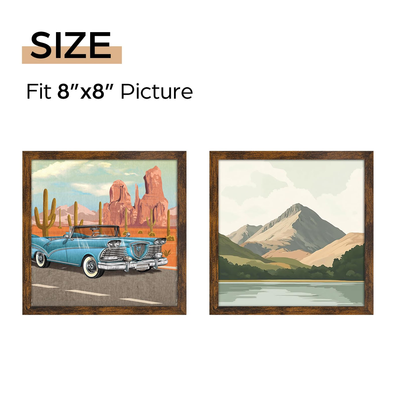 Giftgarden 8x8 Picture Frame Rustic Brown, 8 by 8 Thin Square Photo Frame for Gallery Wall Tabletop Display, Single