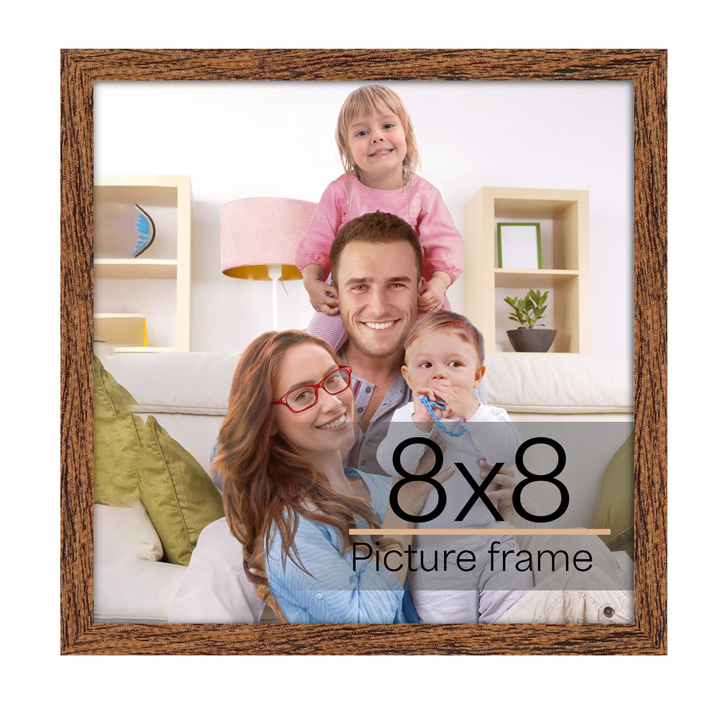 Giftgarden 8x8 Picture Frame Walnut Brown, 8 by 8 Thin Square Photo Frame for Gallery Wall Tabletop Display, Single