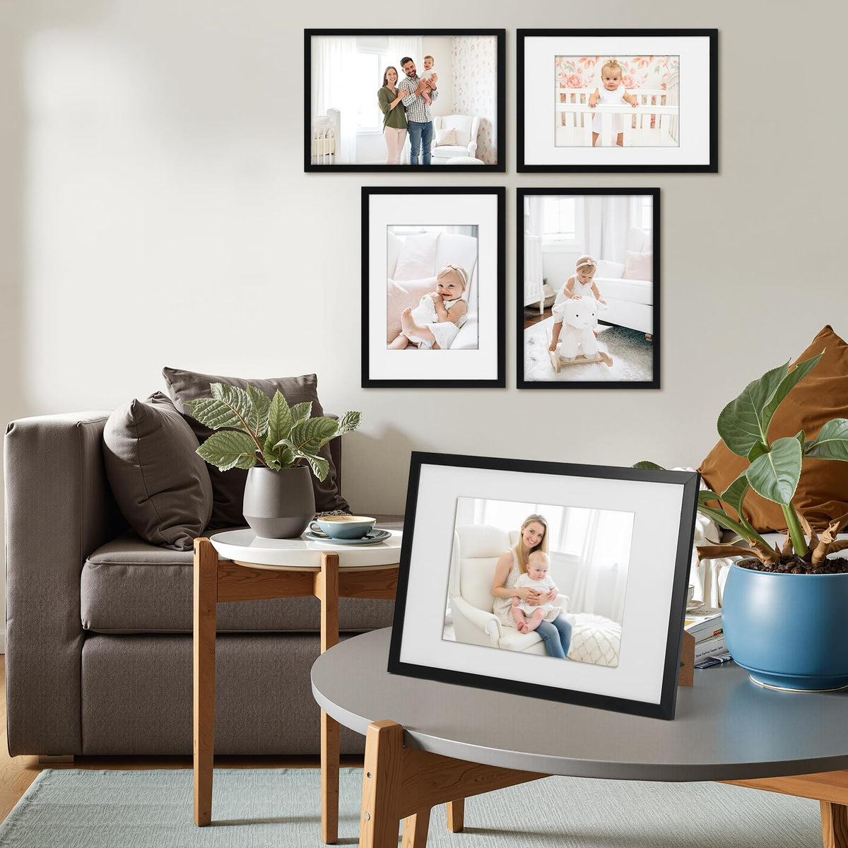 Giftgarden A4 Picture Frame Set of 4, Matted to 6x8 Picture with Mat, 8.3x11.7 Inch Photo Frames for Wall or Tabletop Display, B