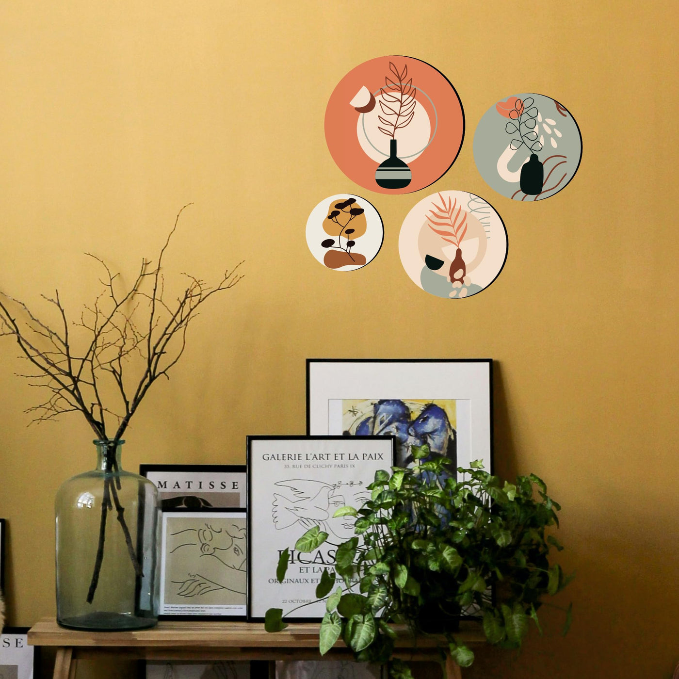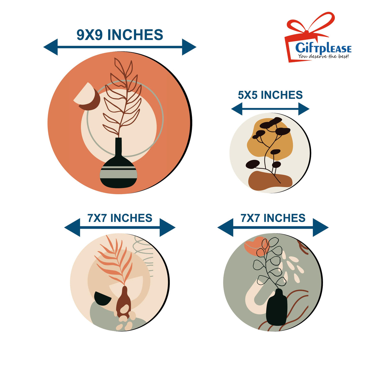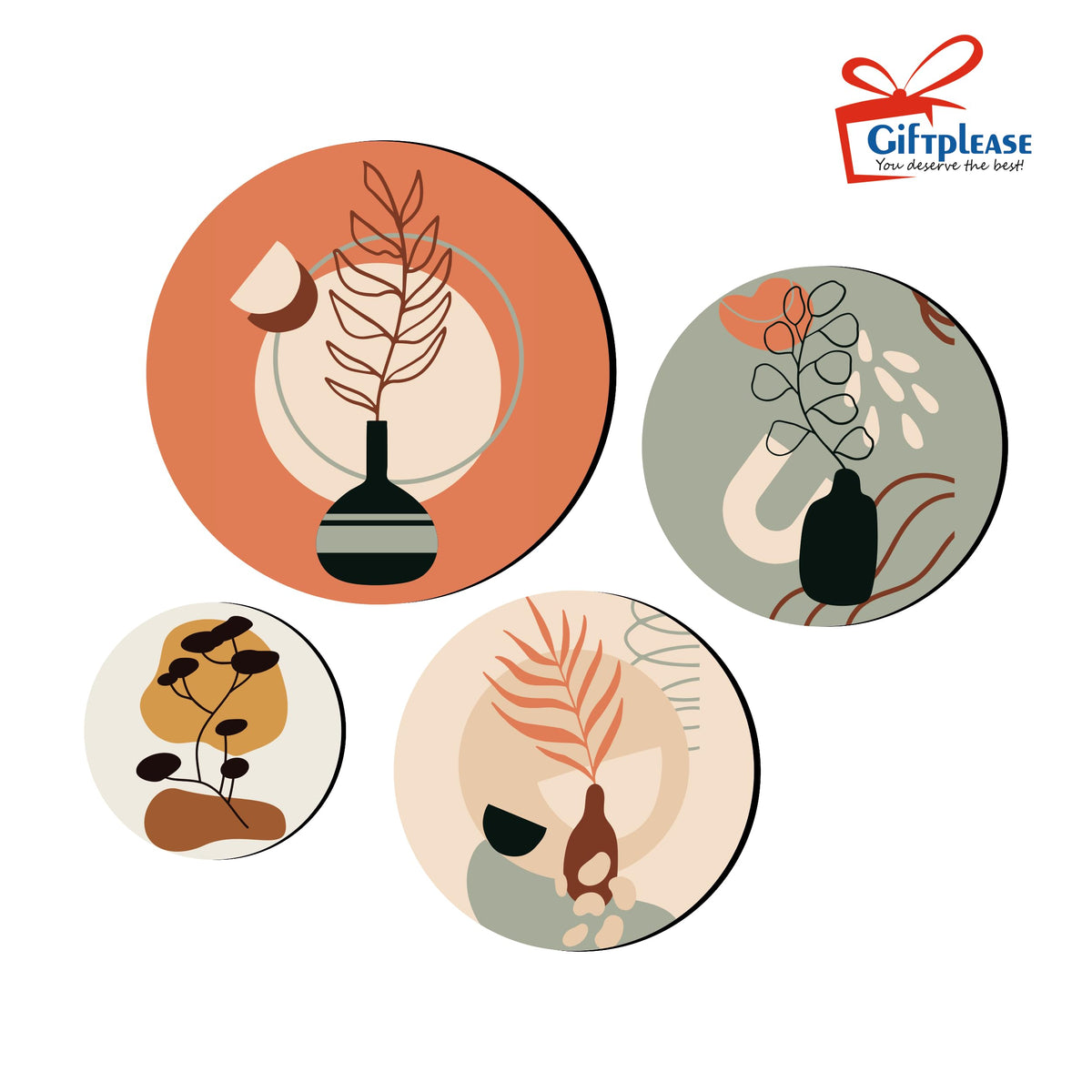 Giftplease Round Shape Elegant Wall Decoration Art - Handcrafted Traditional Wooden Decor Piece (Set Of 4 | Pattern-14)