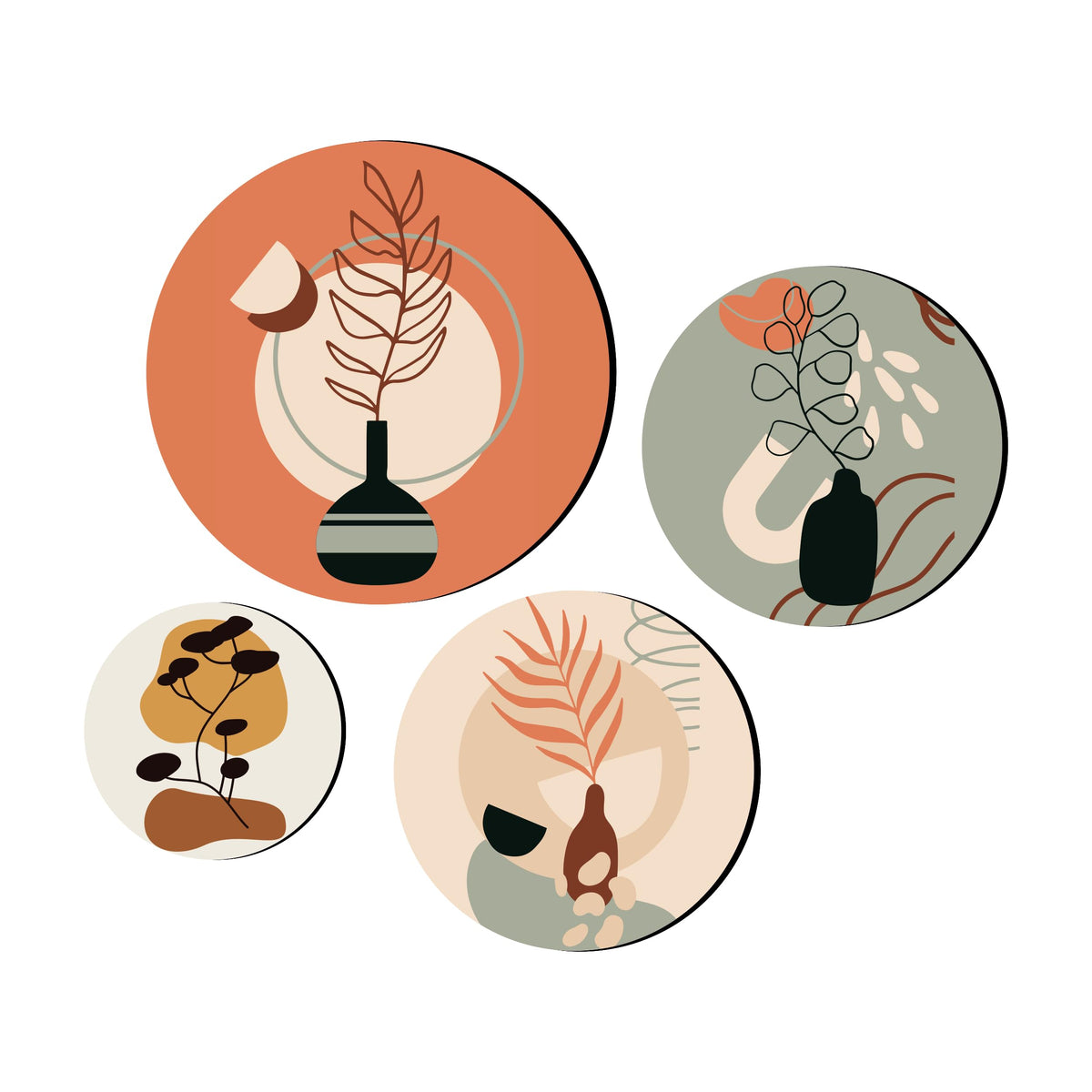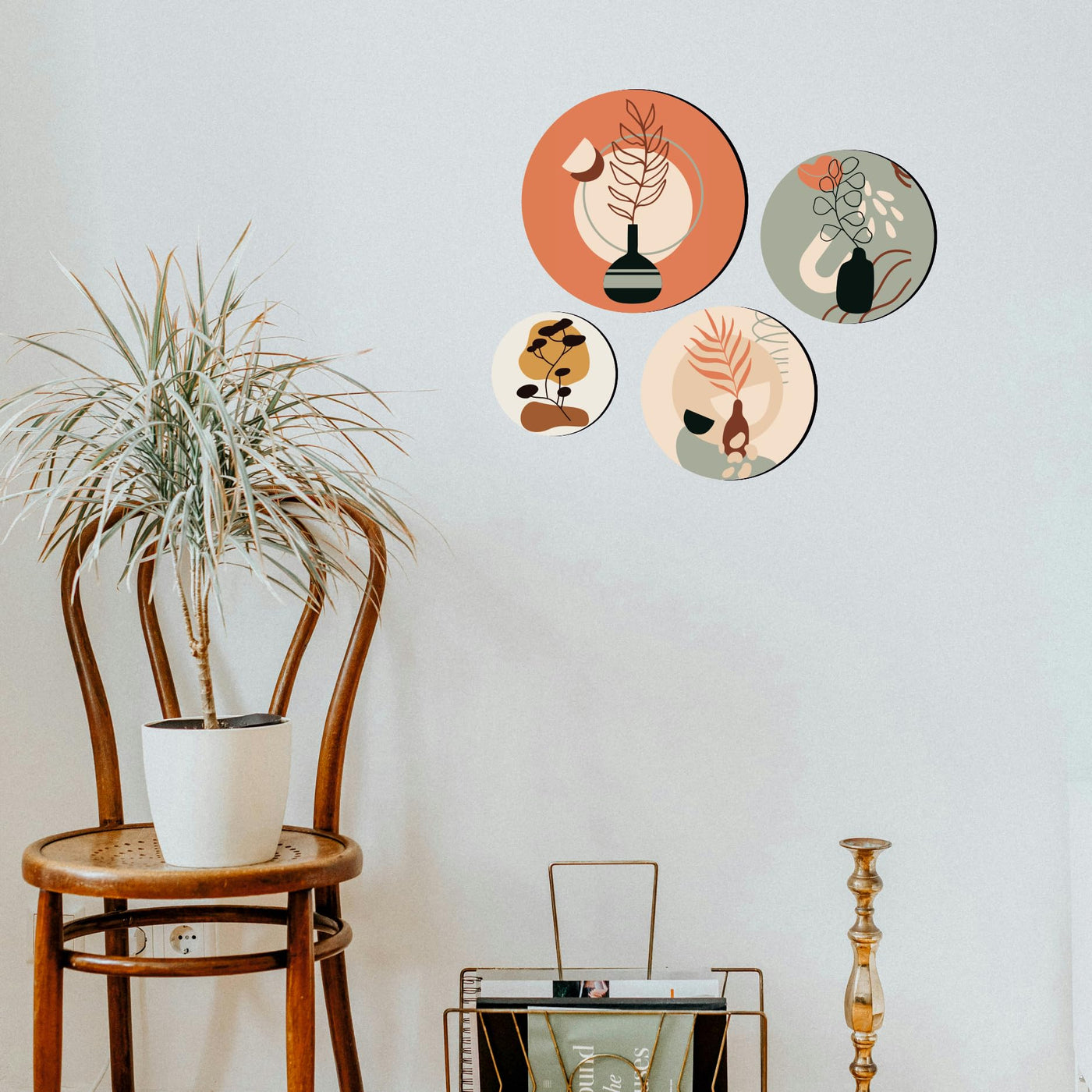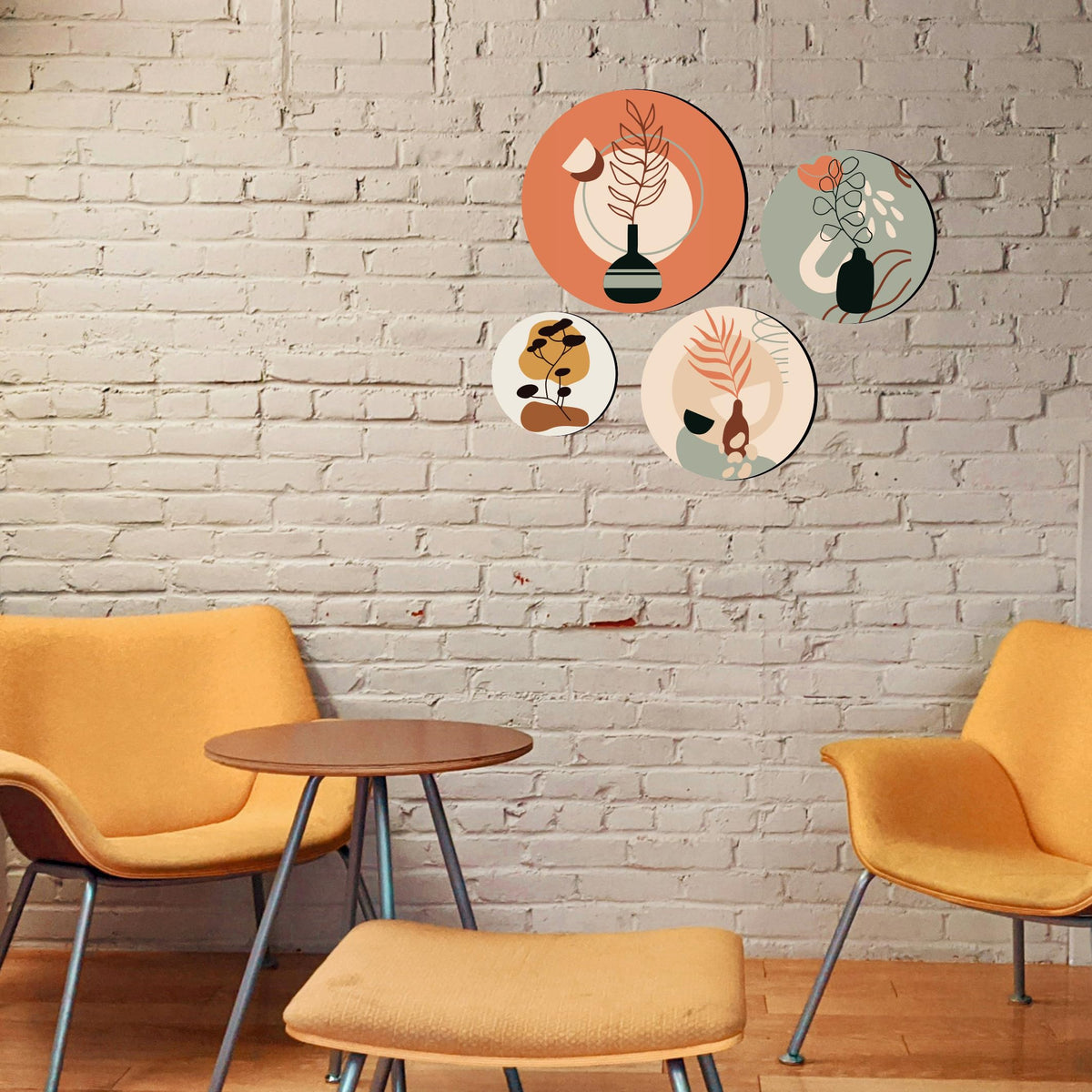Giftplease Round Shape Elegant Wall Decoration Art - Handcrafted Traditional Wooden Decor Piece (Set Of 4 | Pattern-14)
