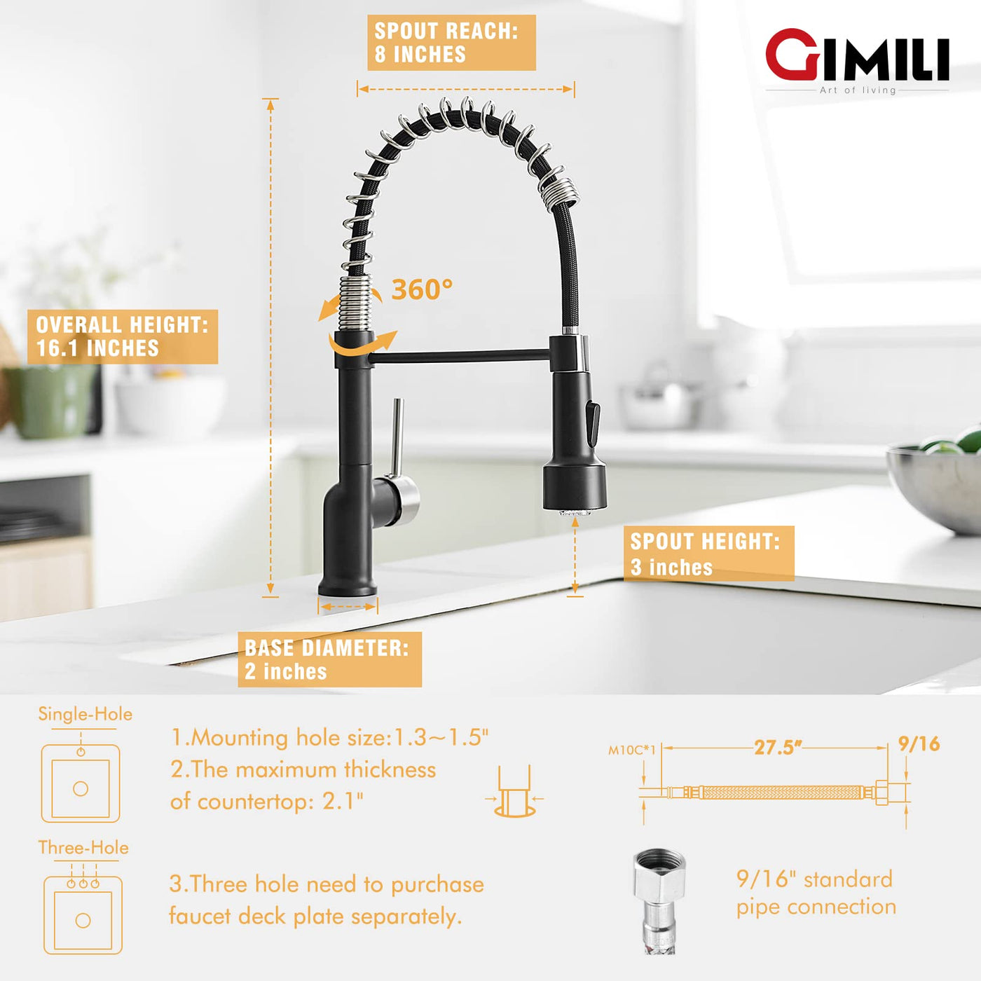 - Q: How do I clean and maintain the faucet? A: To maintain the GIMILI Kitchen Faucet, regularly wipe it down with a soft cloth and mild soap solution. Avoid abrasive cleaners to preserve its finish.
