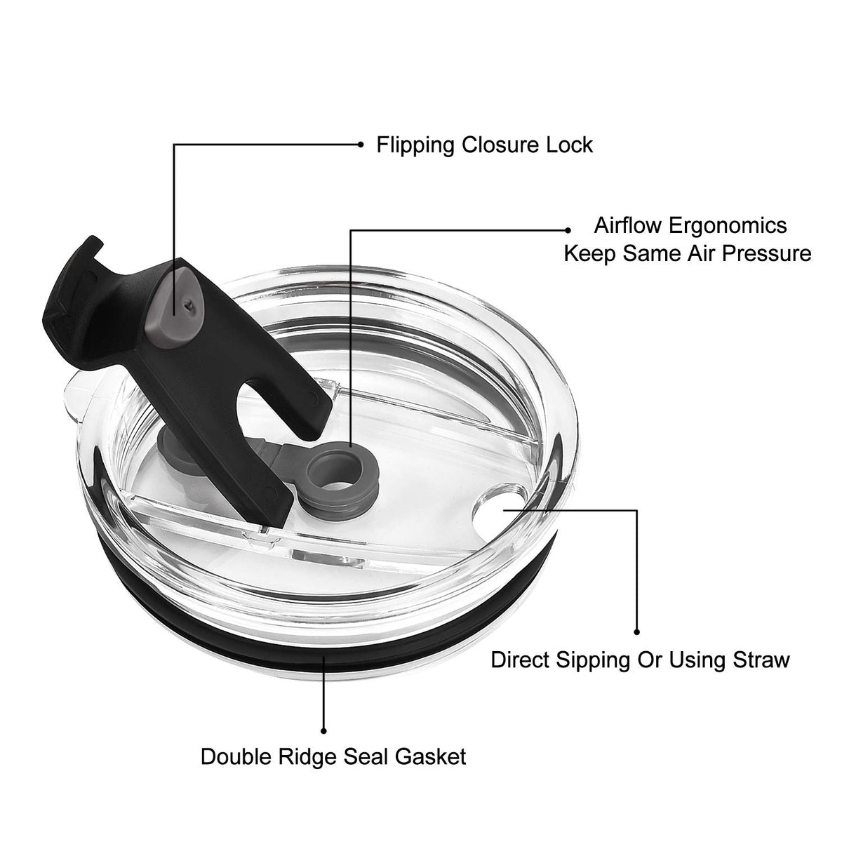 - Q: Does the tumbler come with a lid? A: Yes, the tumbler comes with a crystal clear, BPA-free splash-proof lid that features a ring gasket to prevent spills.