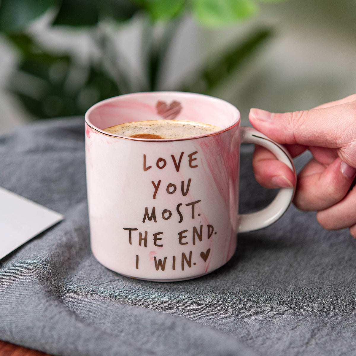 Girlfriend Anniversary Birthday Romantic Gift - Love You Most The End I Win - Cute Couple Gifts Ideas for Girlfriend Wife Fiance Mom Her Couples - Pink Marble Mug Ceramic 11.5oz Coffee Cup