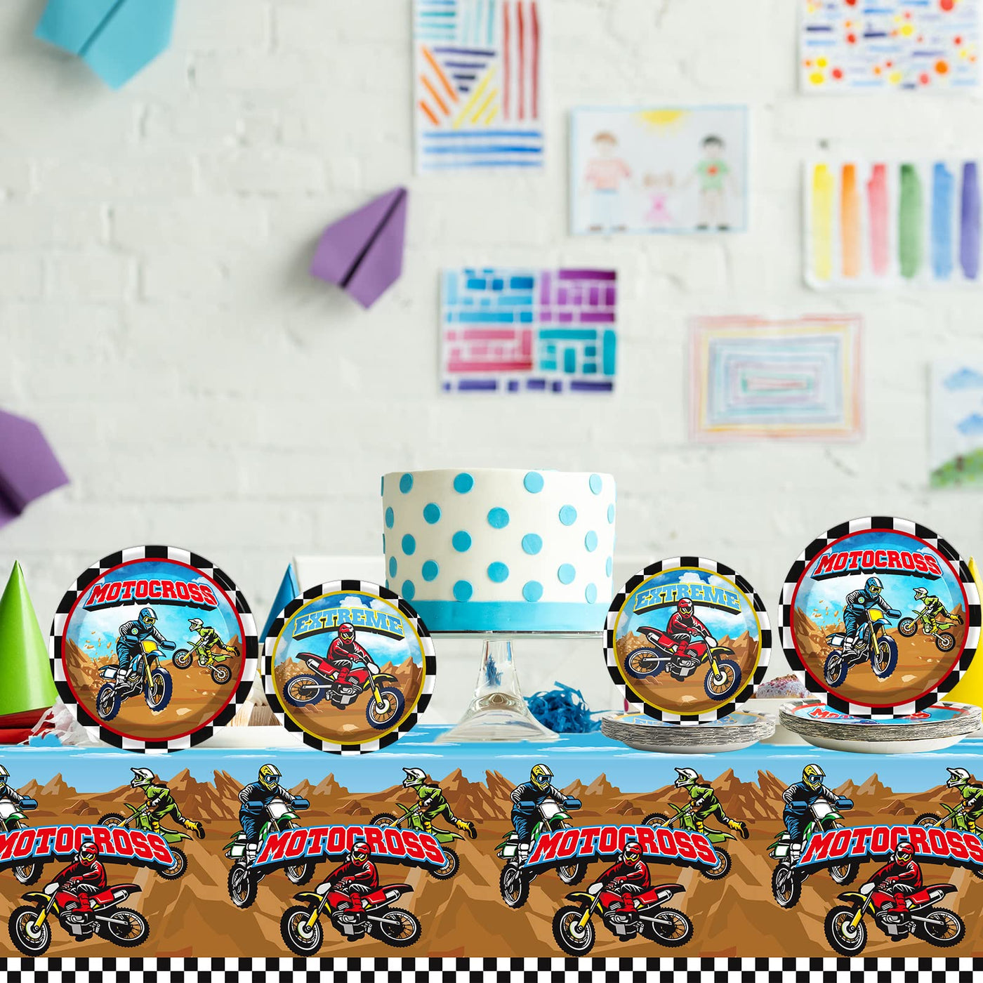 Gisgfim 98Pcs Dirt Bike Birthday Party Supplies Disposable Plates Napkins Tablecloths Decorations Motorcycle Theme Party Table S