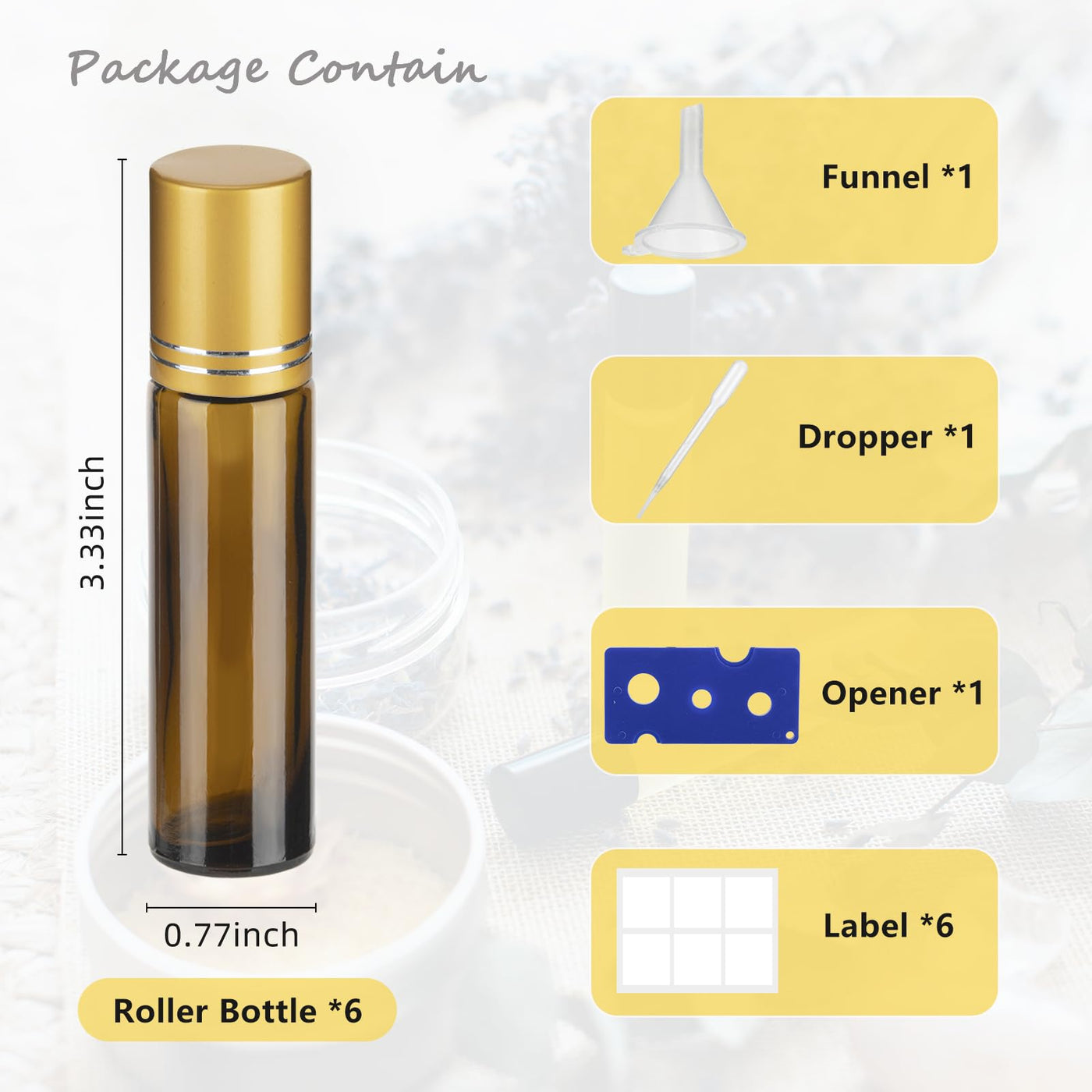 Givitasot 10Ml Essential Oil Roller Bottles, 6 Pack Amber Oil Roller Bottles For Essential Oils, Roll On Bottles With Stainless