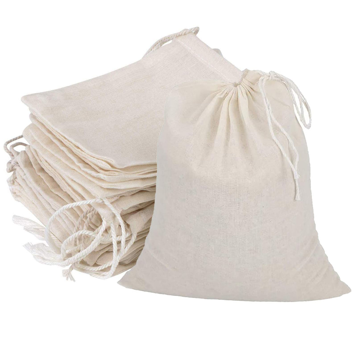 Giyomi 20 Pcs Muslin Drawstring Bags, Natural Unbleached Cotton Straining Herbs Cheesecloth Bags, Coffee Tea Brew Bags, Soup Gra