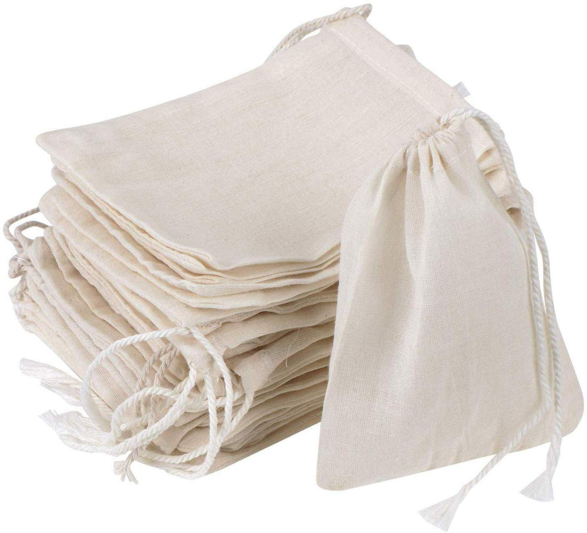 Giyomi 20 Pcs Muslin Drawstring Bags,Natural Unbleached Cotton Straining Herbs Cheesecloth Bags, Coffee Tea Brew Bags, Soup Grav