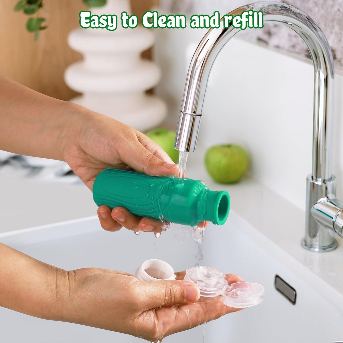 • Q: How do I clean the travel bottles? A: The wide mouth of the travel bottle allows for easy filling and cleaning. You can wash them with warm, soapy water for reuse.