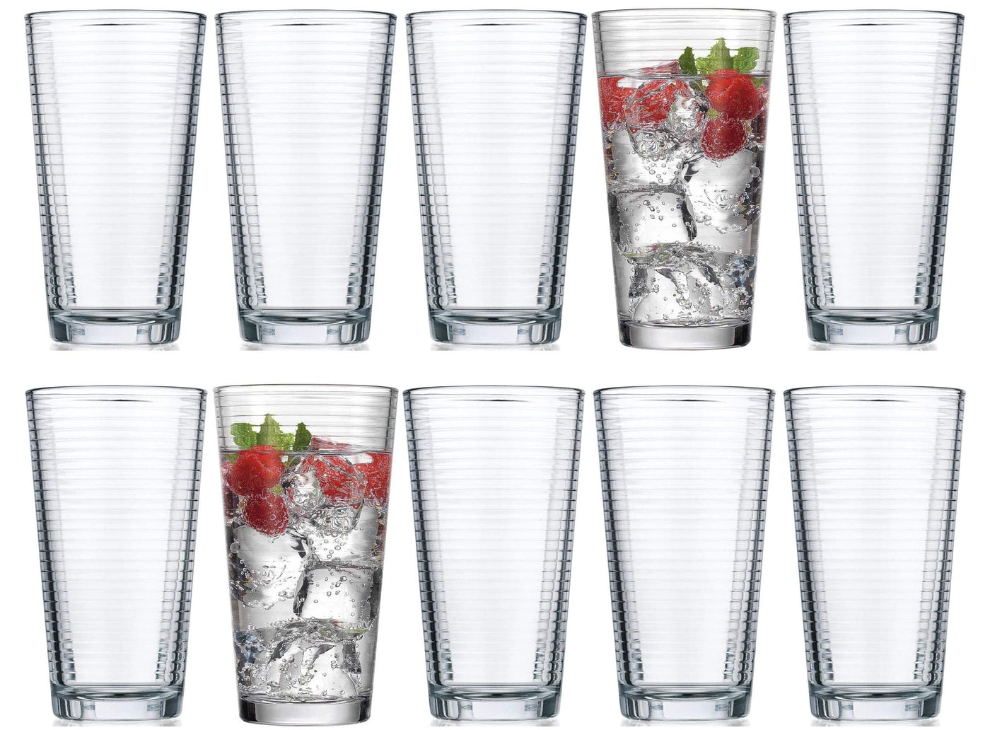 Glaver'S Drinking Glasses Set Of 10 Highball Glass Cups, Premium Quality 17 Oz. Coolers, Ribbed Glassware. Ideal For Water, Juic