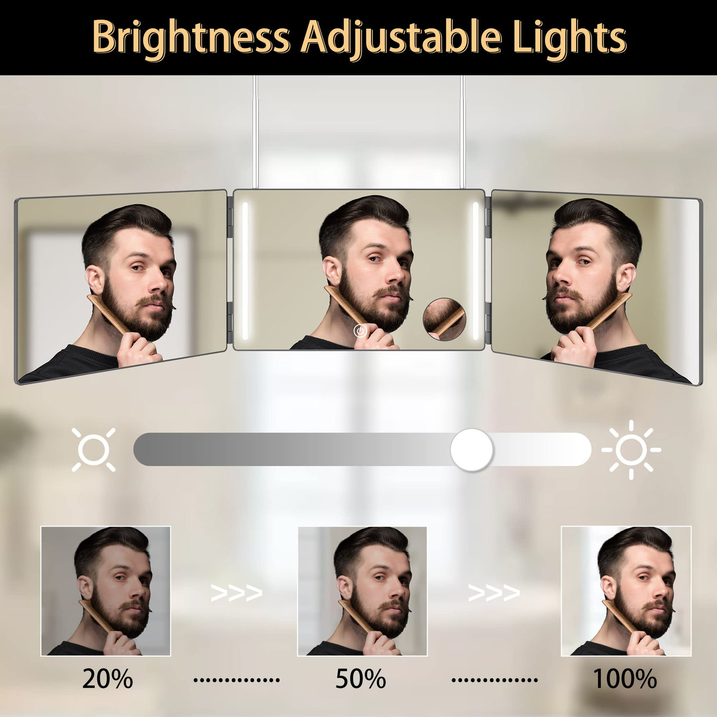 - Q: How does the three-way design benefit users? A: The three-way design allows users to see themselves from multiple angles, providing a comprehensive view for tasks such as hair styling, makeup application, and shaving.