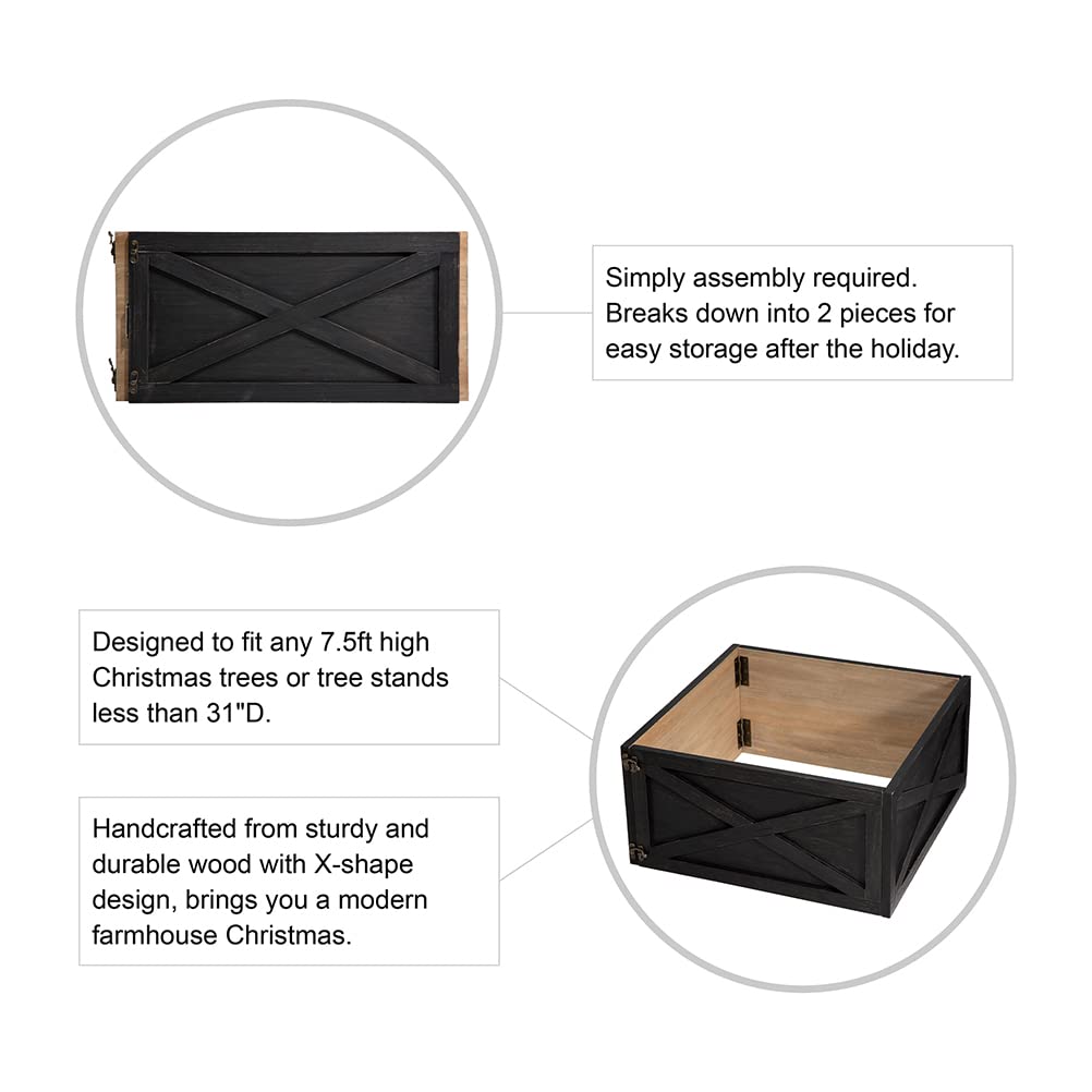 Glitzhome Christmas Tree Collar, 22 L Farmhouse Wooden Black Tree Collar Tree Base Cover, Decorative Christmas Tree Collar for 7