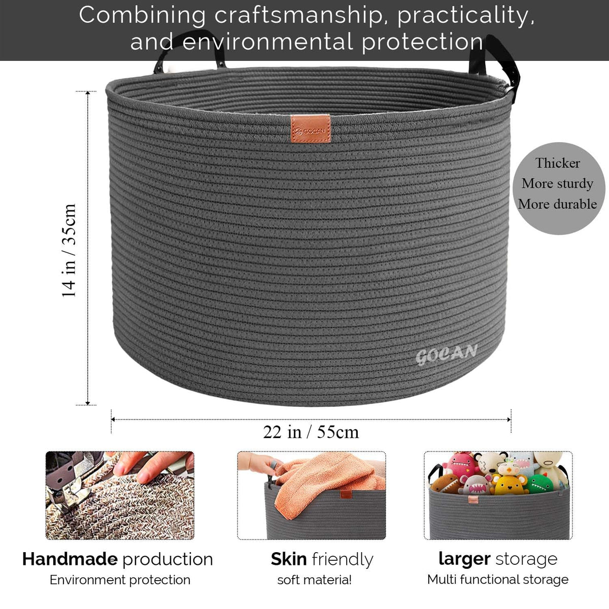 Gocan Extra Large Storage Laundry Basket 22 '' X 22 ''X 14 '' Cotton Rope Woven Basket For Blanket Basket With Handles For Livin