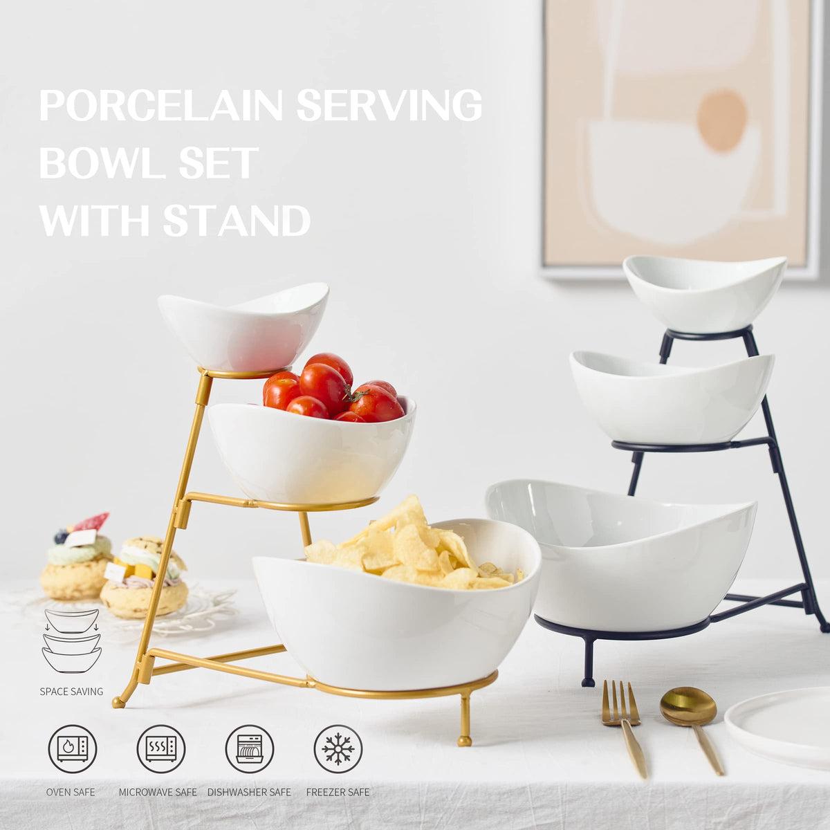 Gomakren 3 Tiered Oval Serving Bowl With Collapsible Metal Rack, Thanksgiving Bowls Dishes, Dessert Appetizer, Candy Chip Dip, F