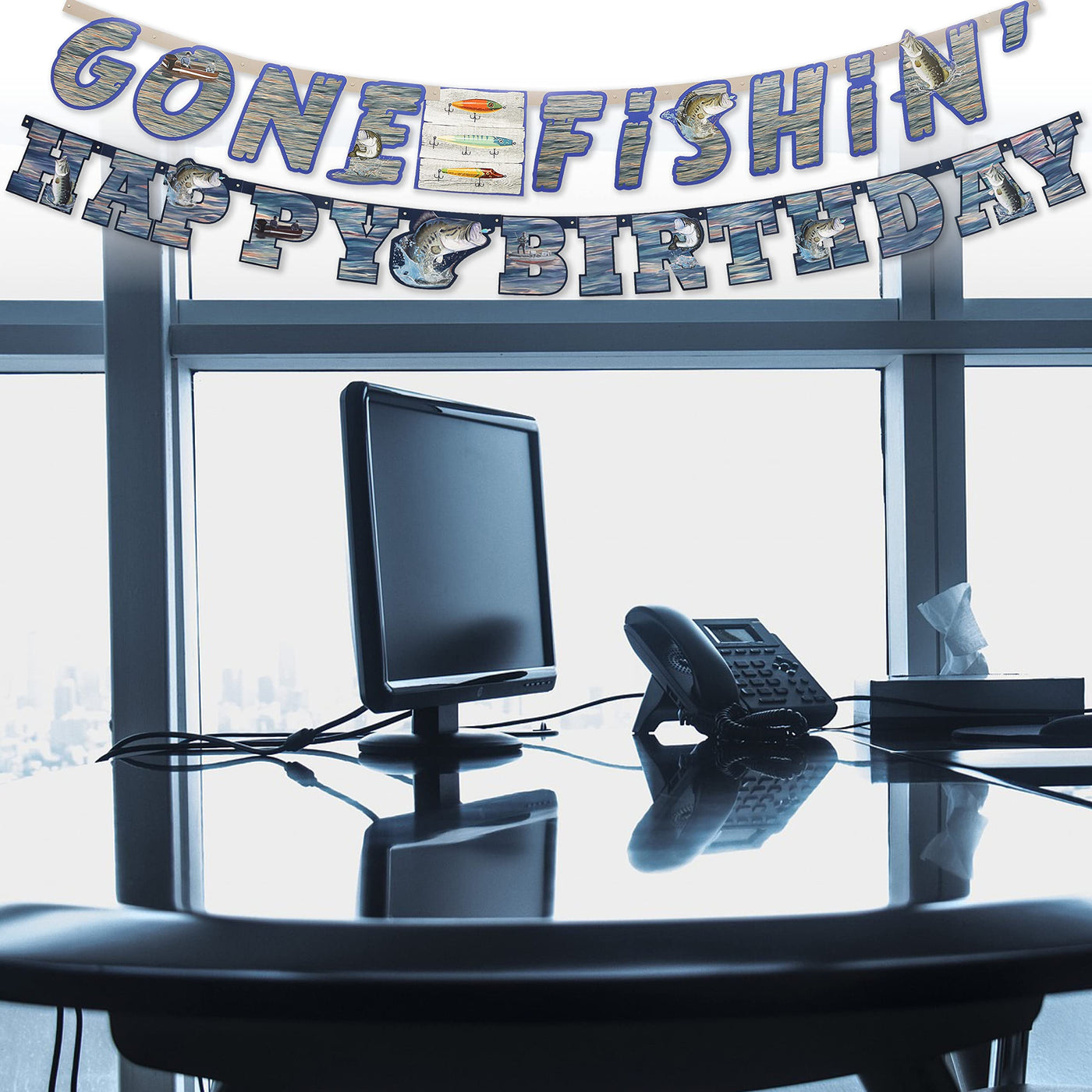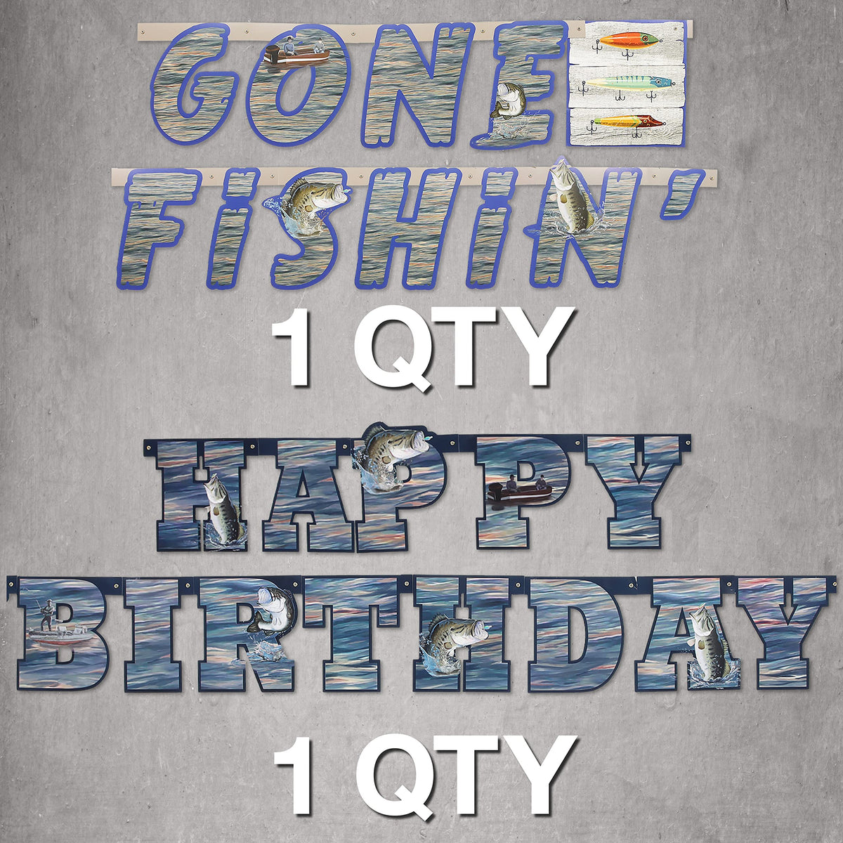 Gone Fishin & Birthday Banners Bundle! Includes 1 Gone Fishin Banner & 1 Happy Birthday Banner. Celebrate Your Fanatic Fisherman