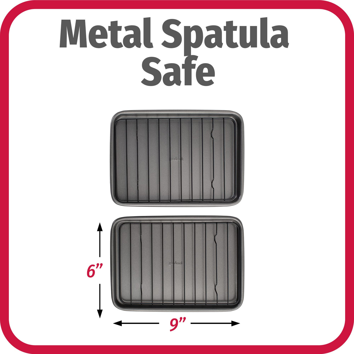 Goodcook Set Of 2 Nonstick Steel 9'' X 6.2'' Toaster Oven Mini Baking Sheets With Racks, Gray (4221)