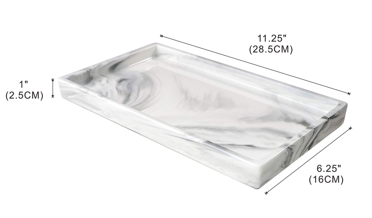 - Q: What is the size of the Goporcelain White Marble Bathroom Counter Tray? A: The Goporcelain White Marble Bathroom Counter Tray is available in two sizes: a large size measuring 12 inches by 7.9 inches by 1 inch and a medium size measuring 11.2 inches by 6.3 inches by 1 inch.