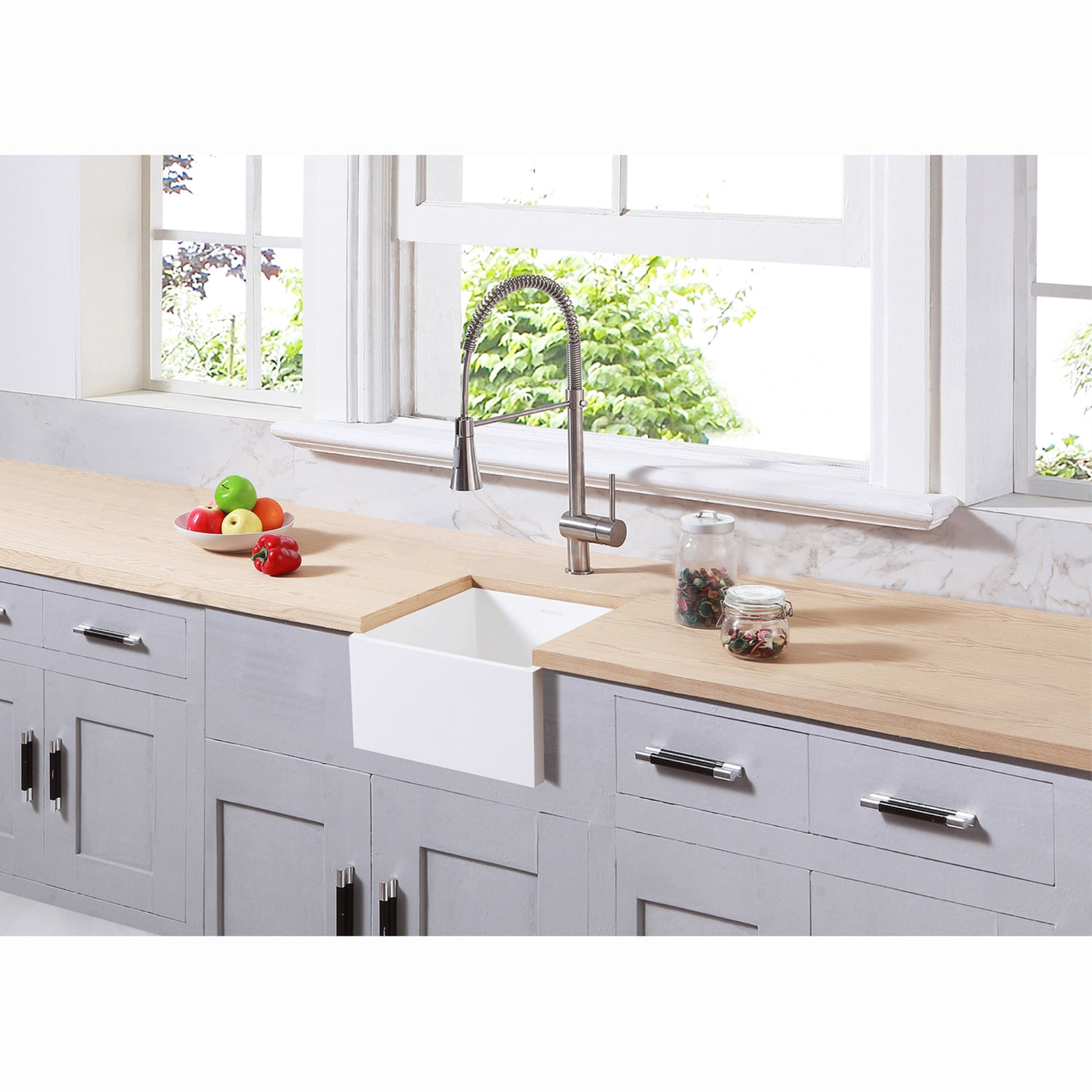 Gourmetier GKUSA15158 Arcticstone Solid Surface Undermount 15'' Square Single Bowl Bar Sink with Drain Matte White