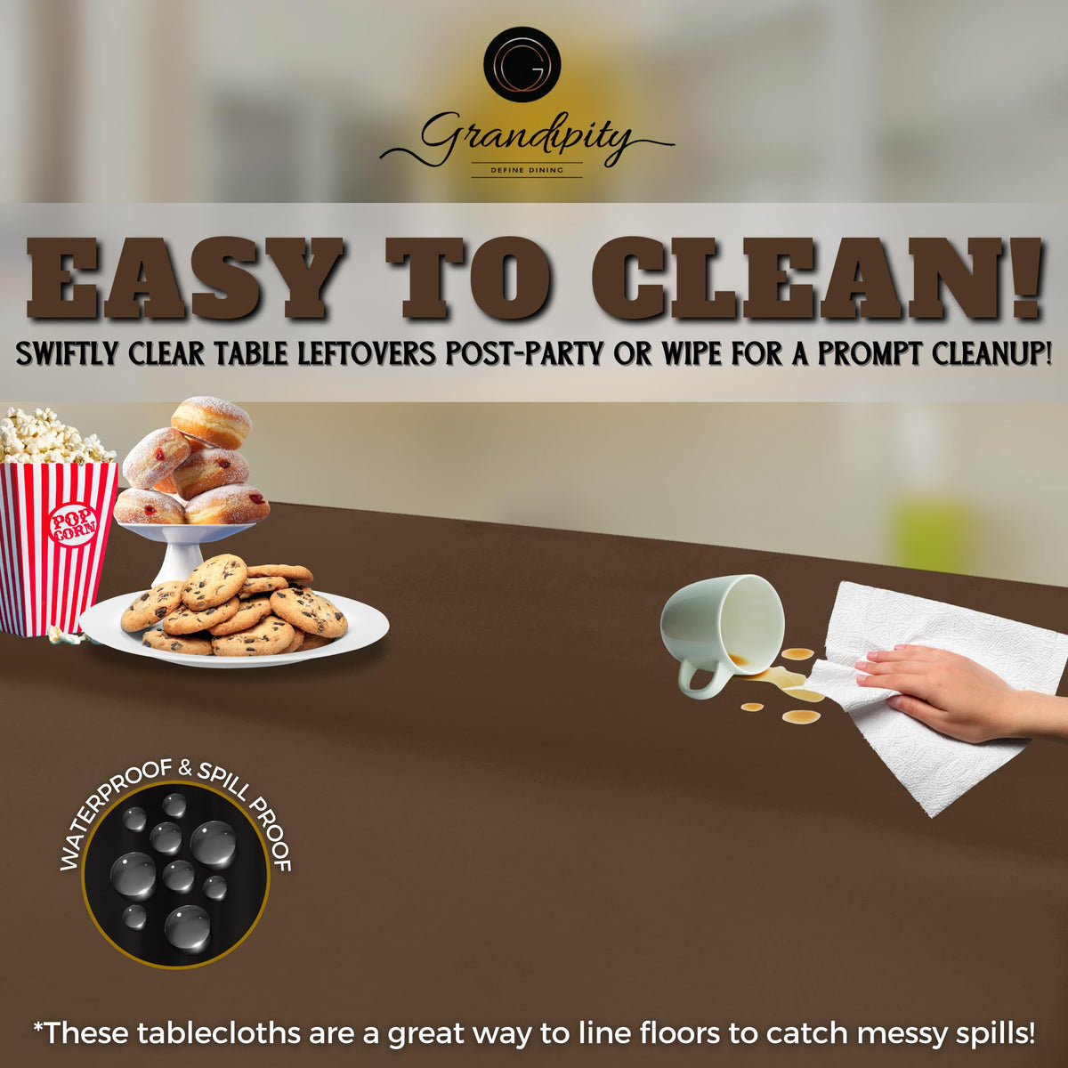 Grandipity Brown Plastic Table Cloth Disposable (6 Pk) 54In X 108In Plastic Tablecloths For Rectangle Tables - Premium Party Tab