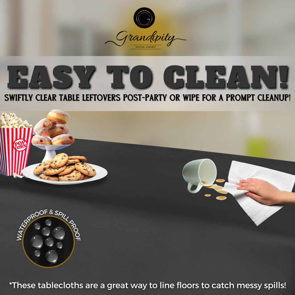 Grandipity Dark Grey Plastic Table Cloth Disposable (6 Pk) 54In X 108In Plastic Tablecloths For Rectangle Tables - Premium Party