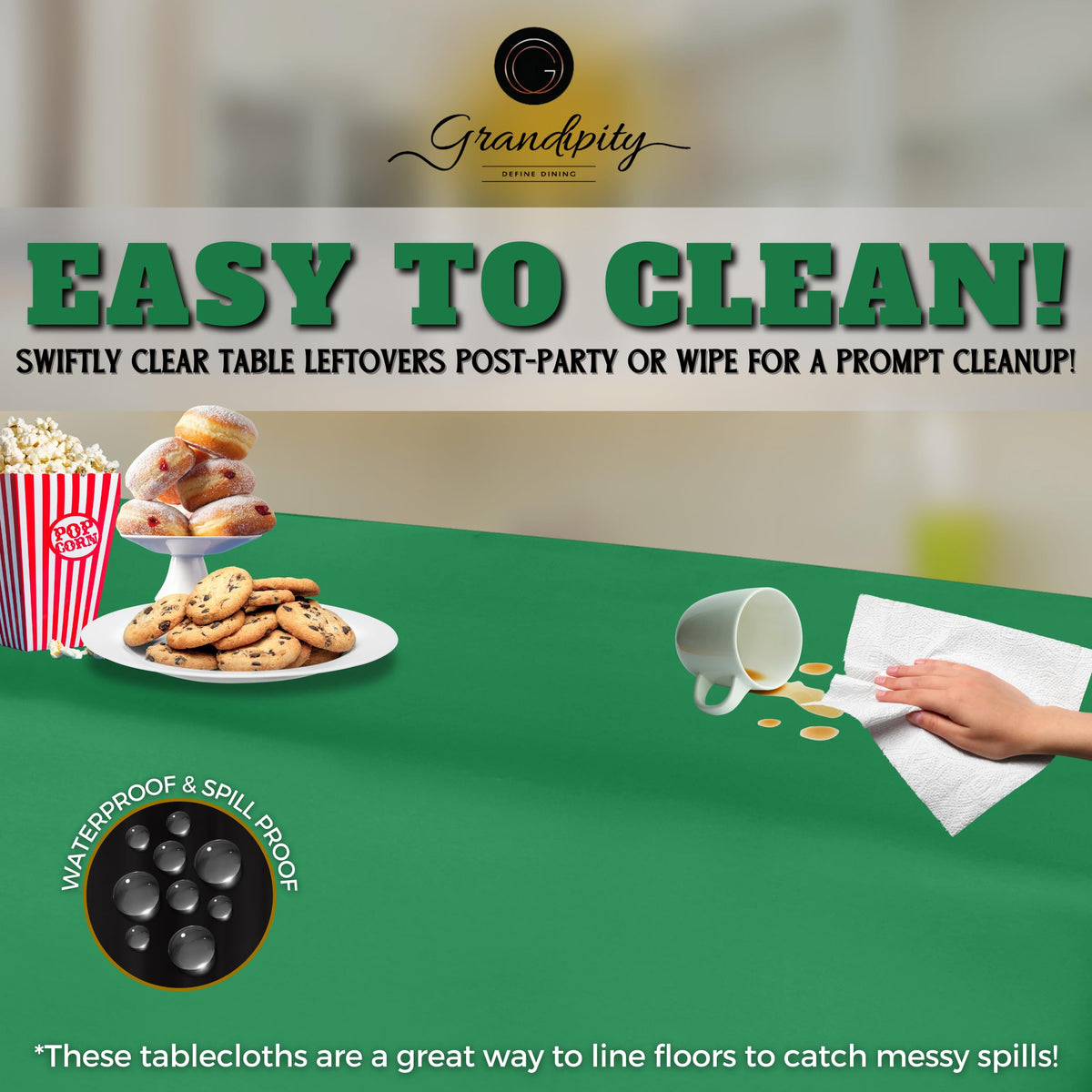 Grandipity Green Plastic Table Cloth Disposable (6 Pk) 54In X 108In Plastic Tablecloths For Rectangle Tables - Premium Party Tab