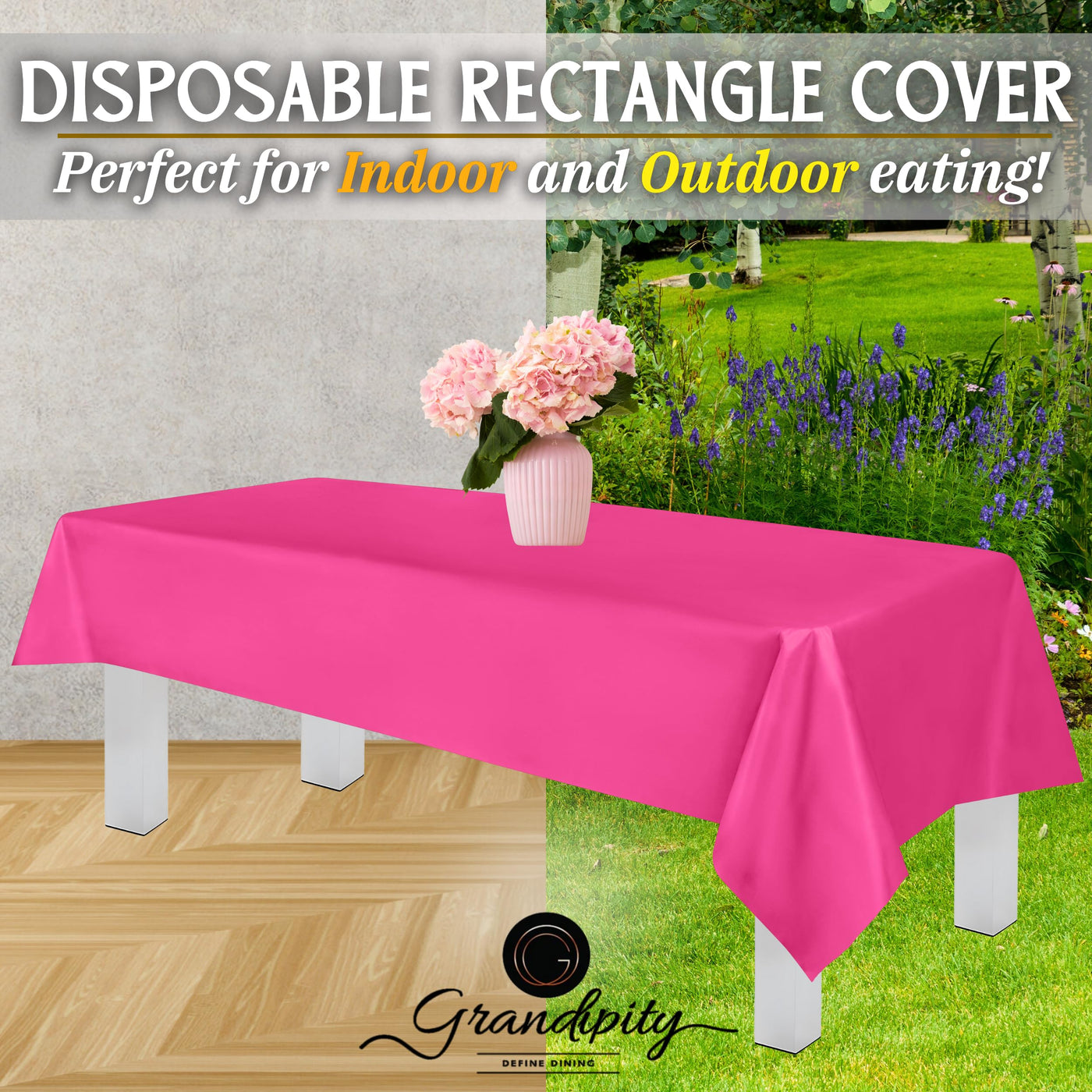 Grandipity Hot Pink Plastic Table Cloth Disposable (6 Pk) 54In X 108In Plastic Tablecloths For Rectangle Tables - Premium Party