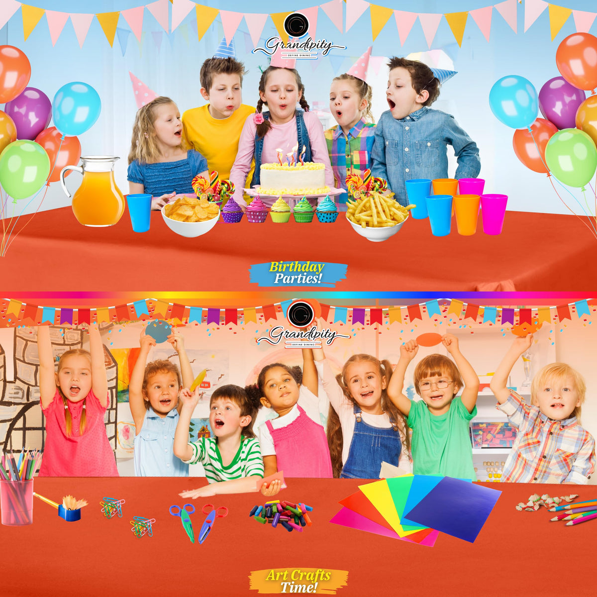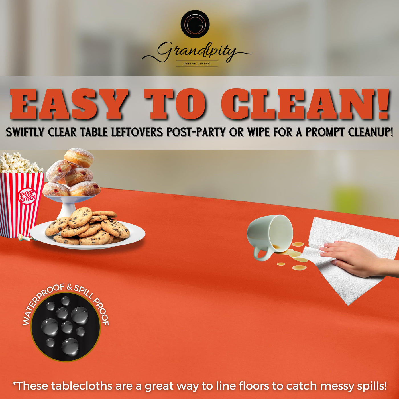 - Q: Is this tablecloth disposable? A: Yes, the Grandipity tablecloth is made from plastic and is designed to be disposable for easy cleanup after events.