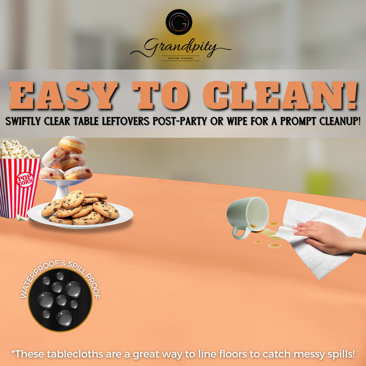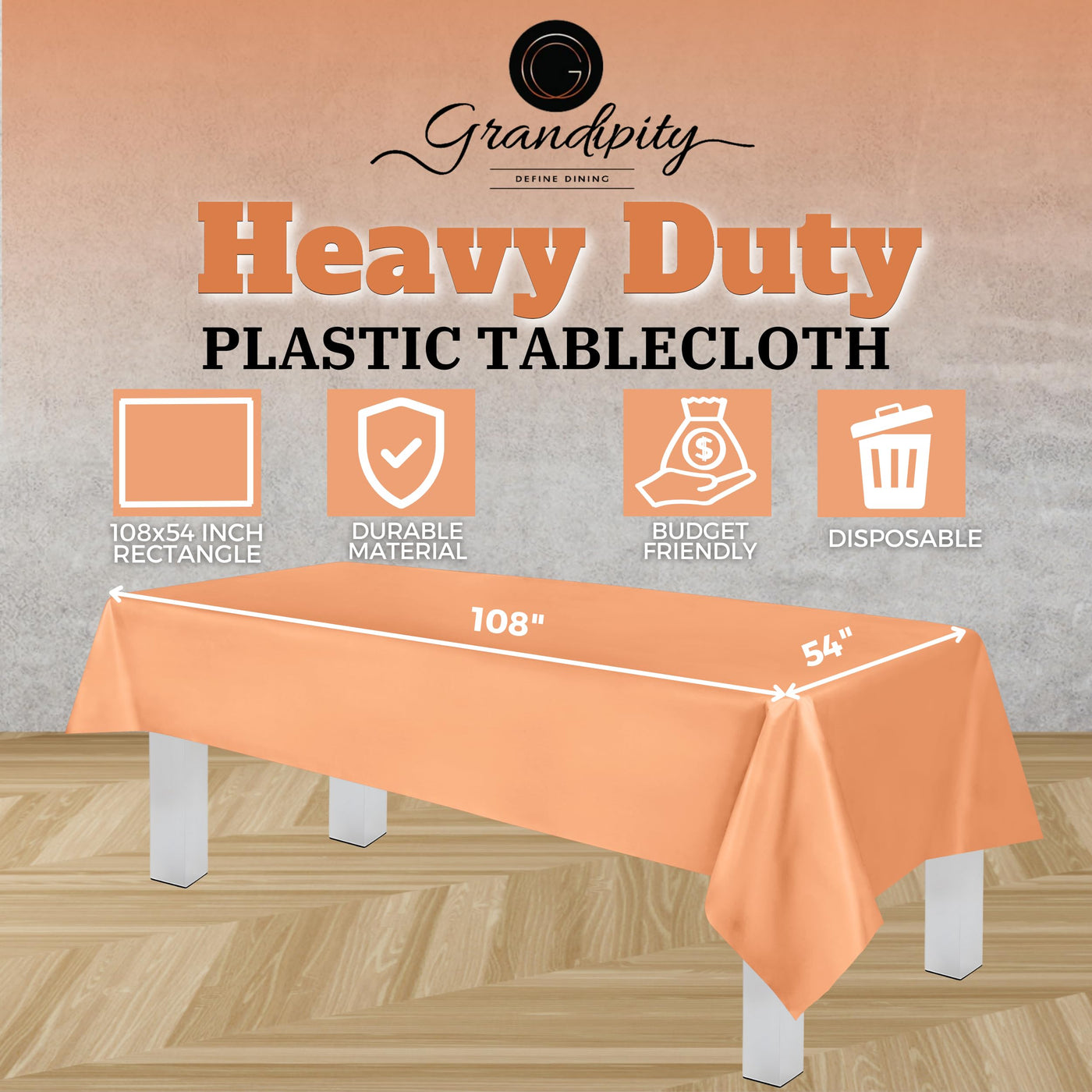Grandipity Peach Plastic Table Cloth Disposable (6 Pk) 54In X 108In Plastic Tablecloths For Rectangle Tables - Premium Party Tab
