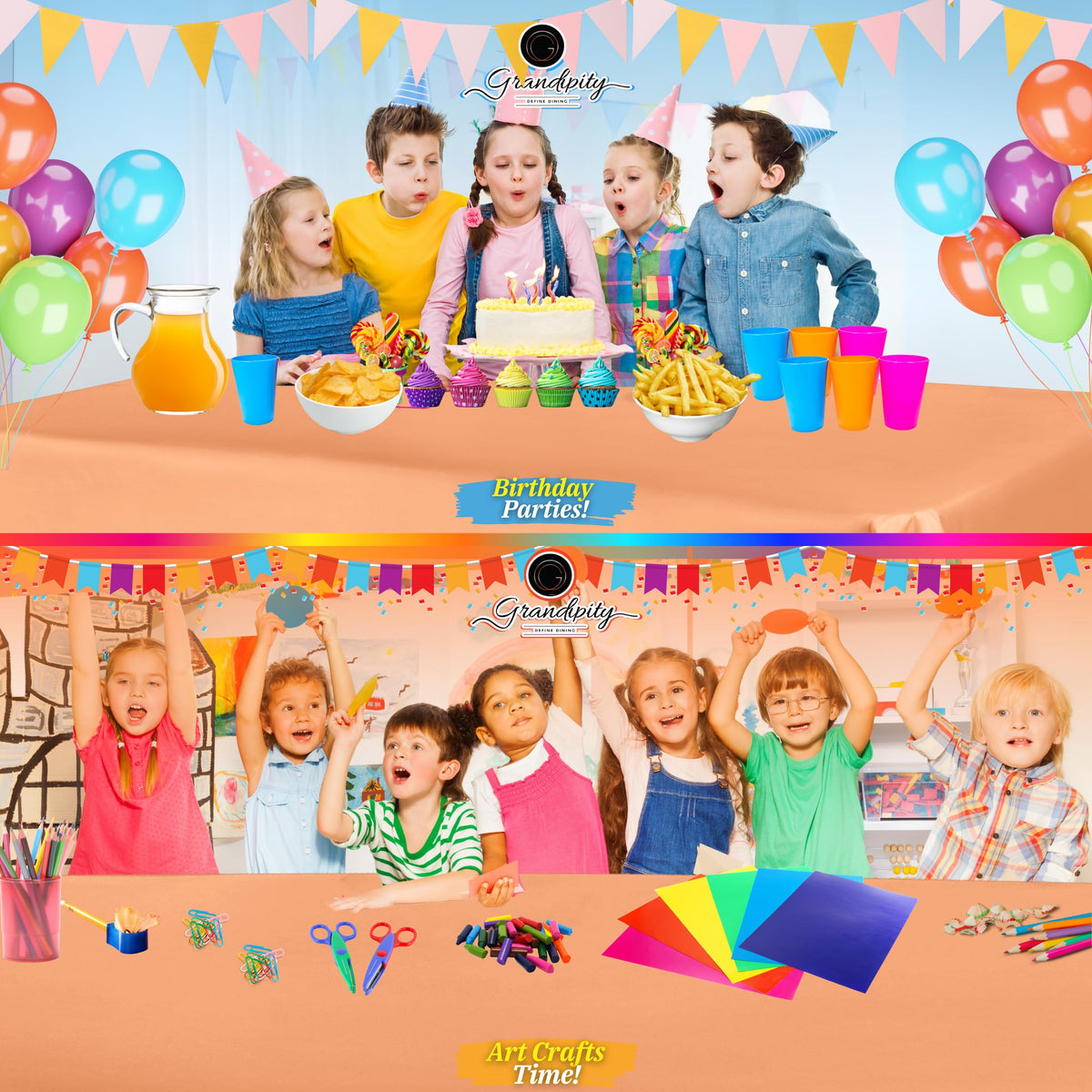 - Q: How many tablecloths come in a pack? A: The Grandipity Peach tablecloth is available in multiple pack options, including single packs, as well as packs of 6 and 12, catering to your event needs.