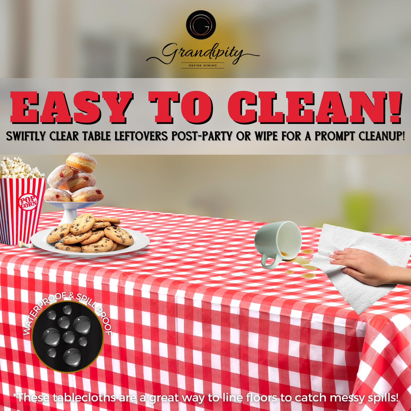 Grandipity Red Gingham Checkered Plastic Table Cloth Disposable (6 Pk) 54In X 108In Plastic Tablecloths For Rectangle Tables - P