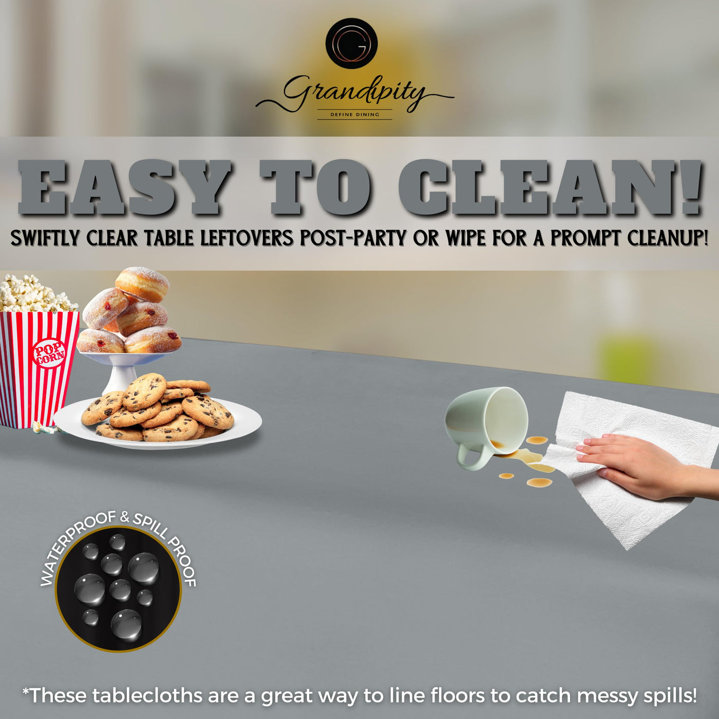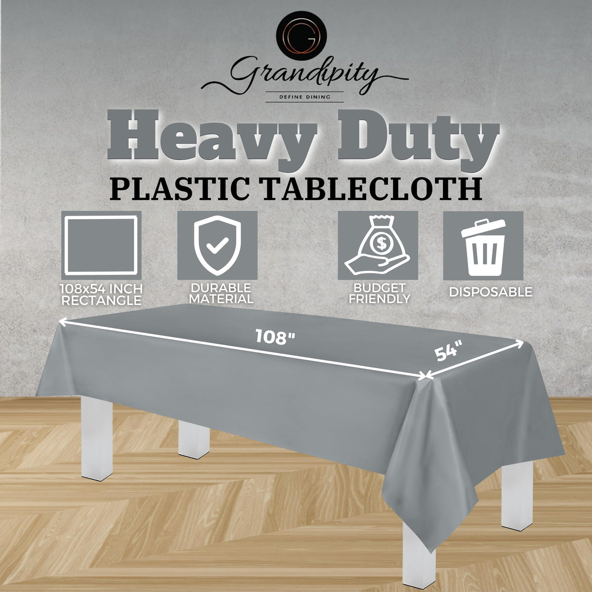 Grandipity Silver Plastic Table Cloth Disposable (6 Pk) 54In X 108In Plastic Tablecloths For Rectangle Tables - Premium Party Ta