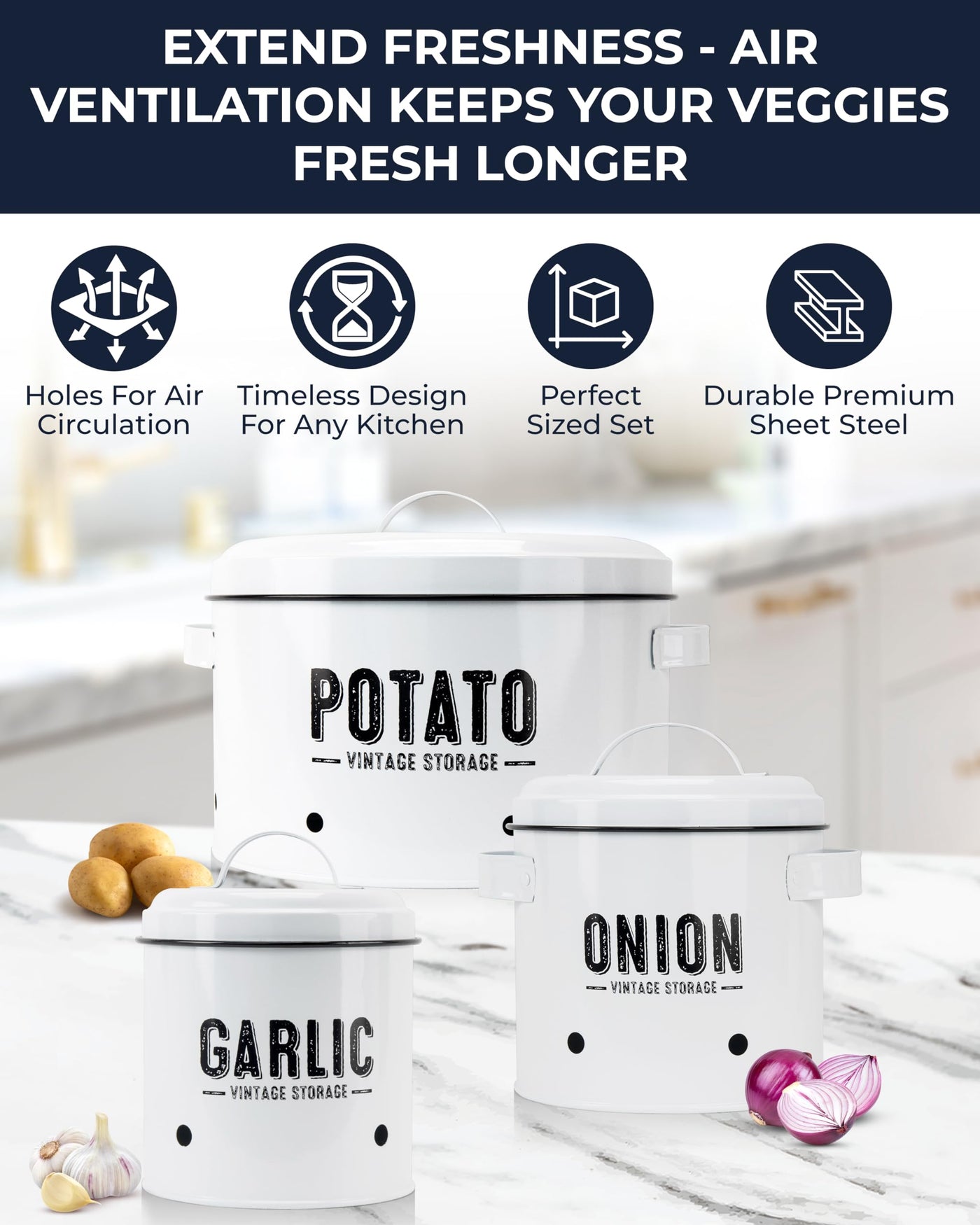 Granrosi Potato Storage For Pantry, Canister Sets For The Kitchen Counter, Garlic Keeper For Counter, Onion Keeper, Potato Bin,