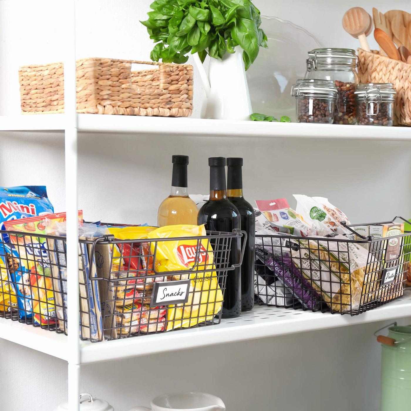 • Q: Are these baskets good for organizing food items? A: Absolutely! These wire baskets are perfect for organizing snacks, chips, fruits, and other food items in your kitchen or pantry.