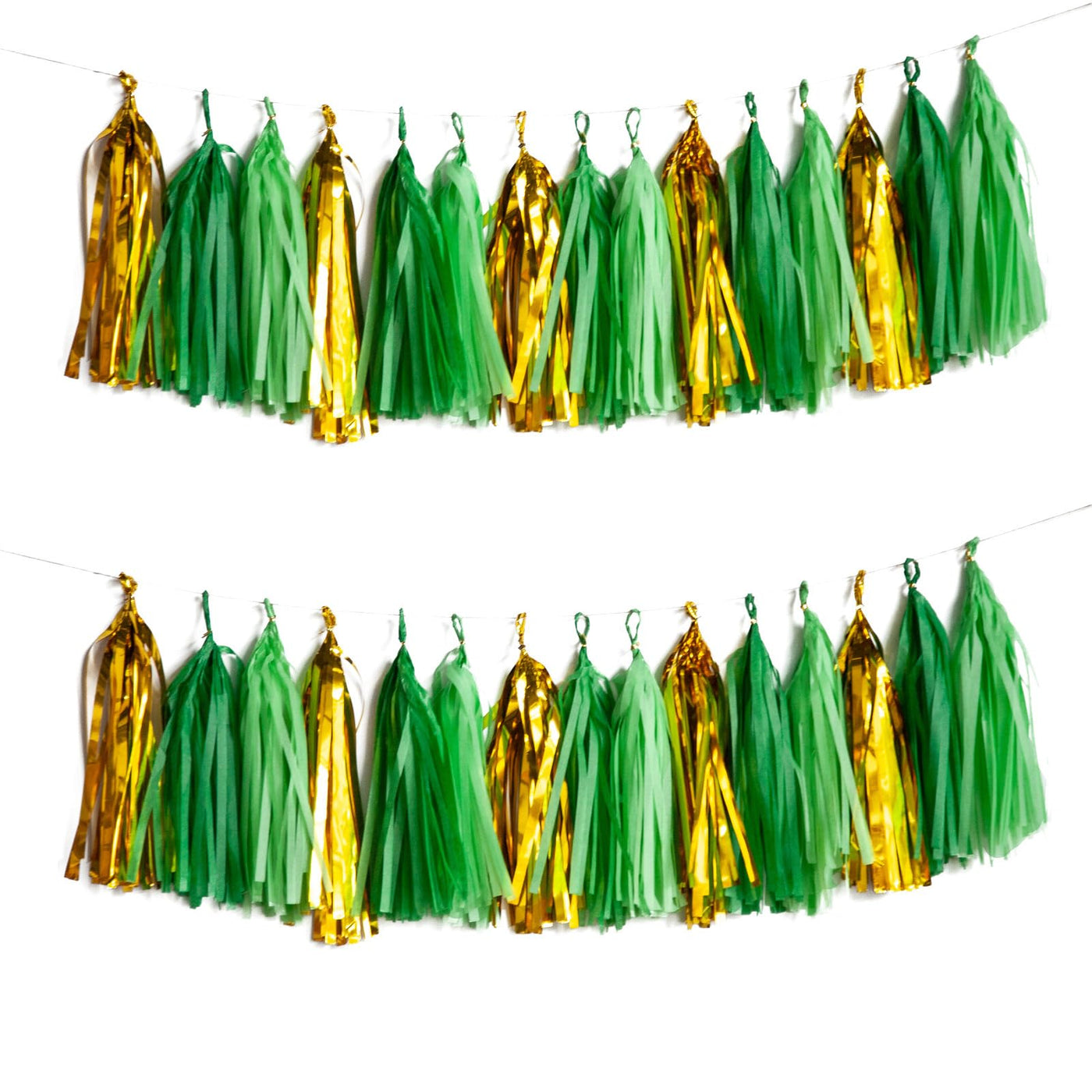 Green and Gold Tassel Garland,Tissue Tassel Banner for Party Decorations,Pack of 15
