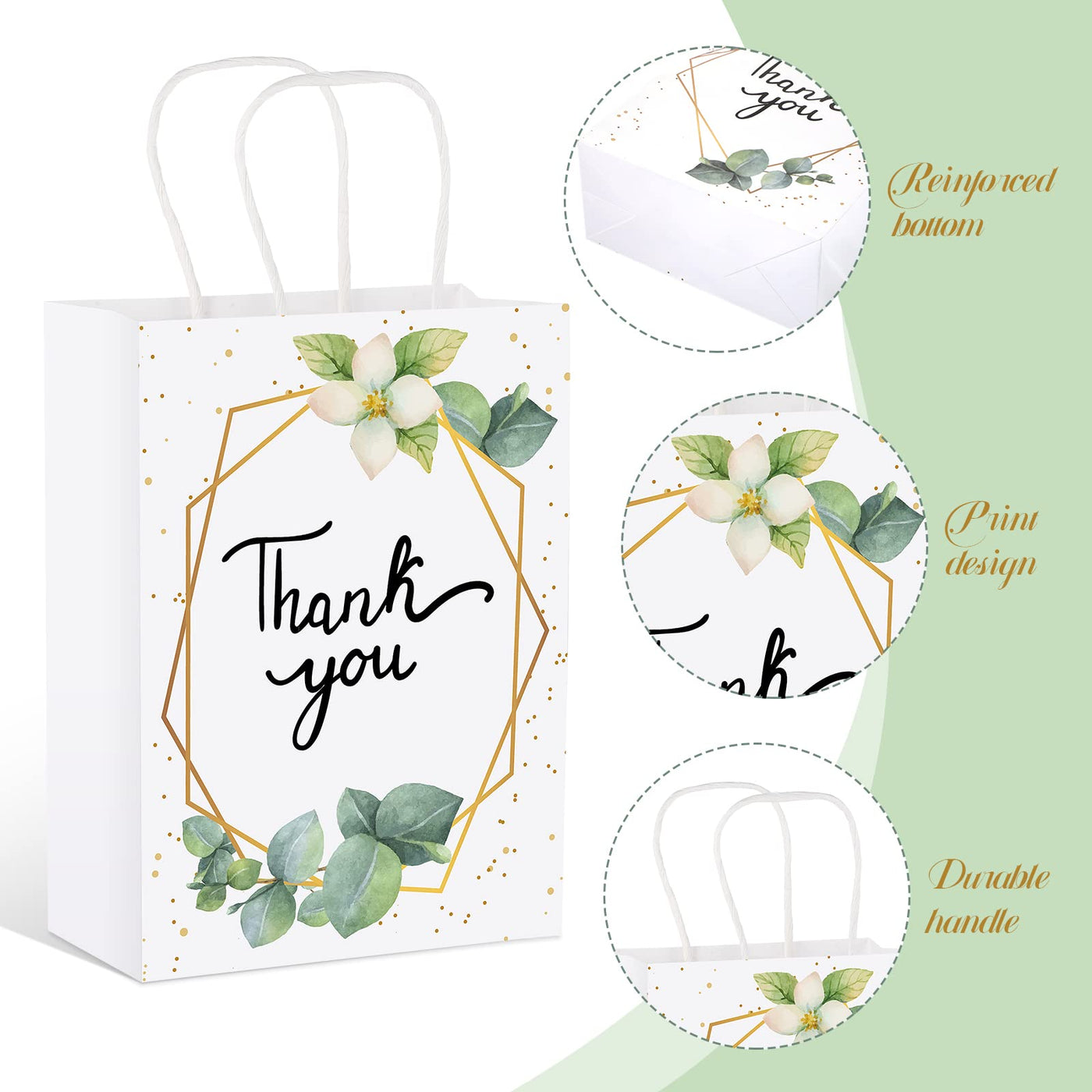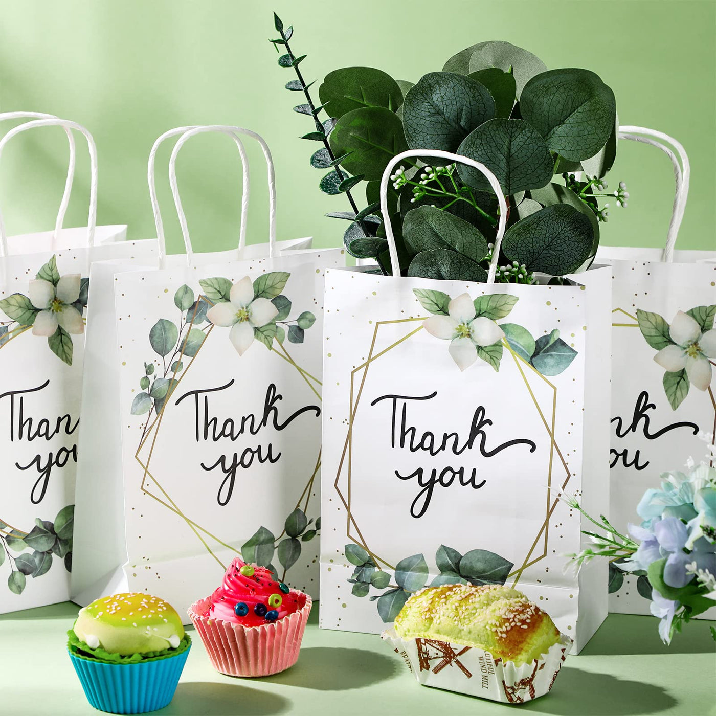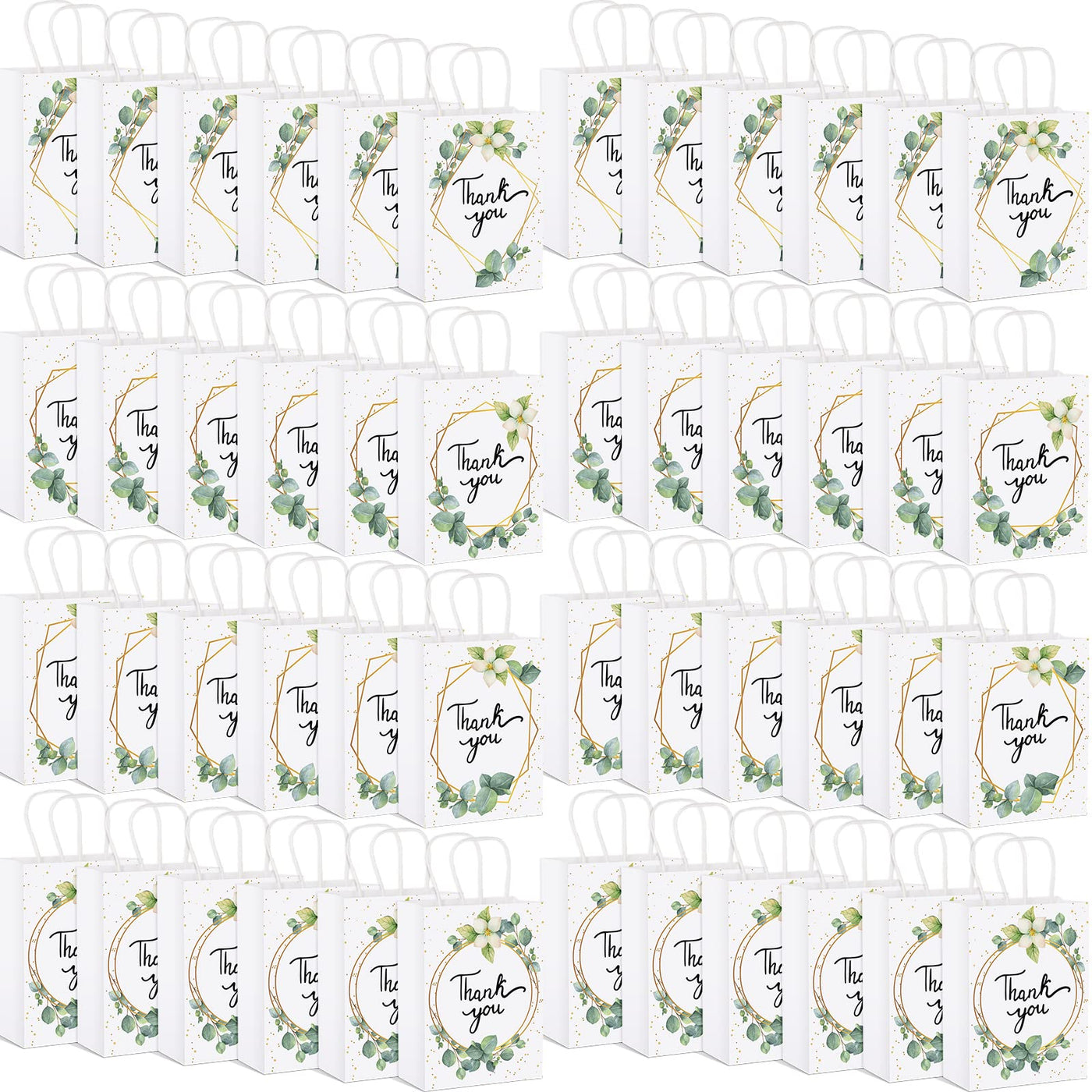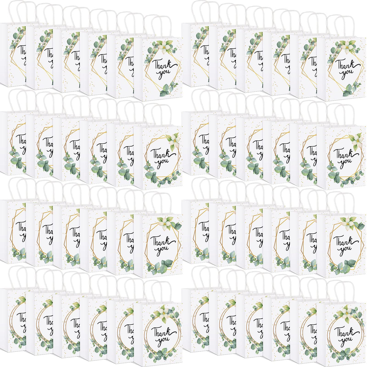 Greenery Eucalyptus Small Thank You Bags Floral Design Paper Gift Bags With Handles Baby Shower Favor Bags Thank You Wedding Bag