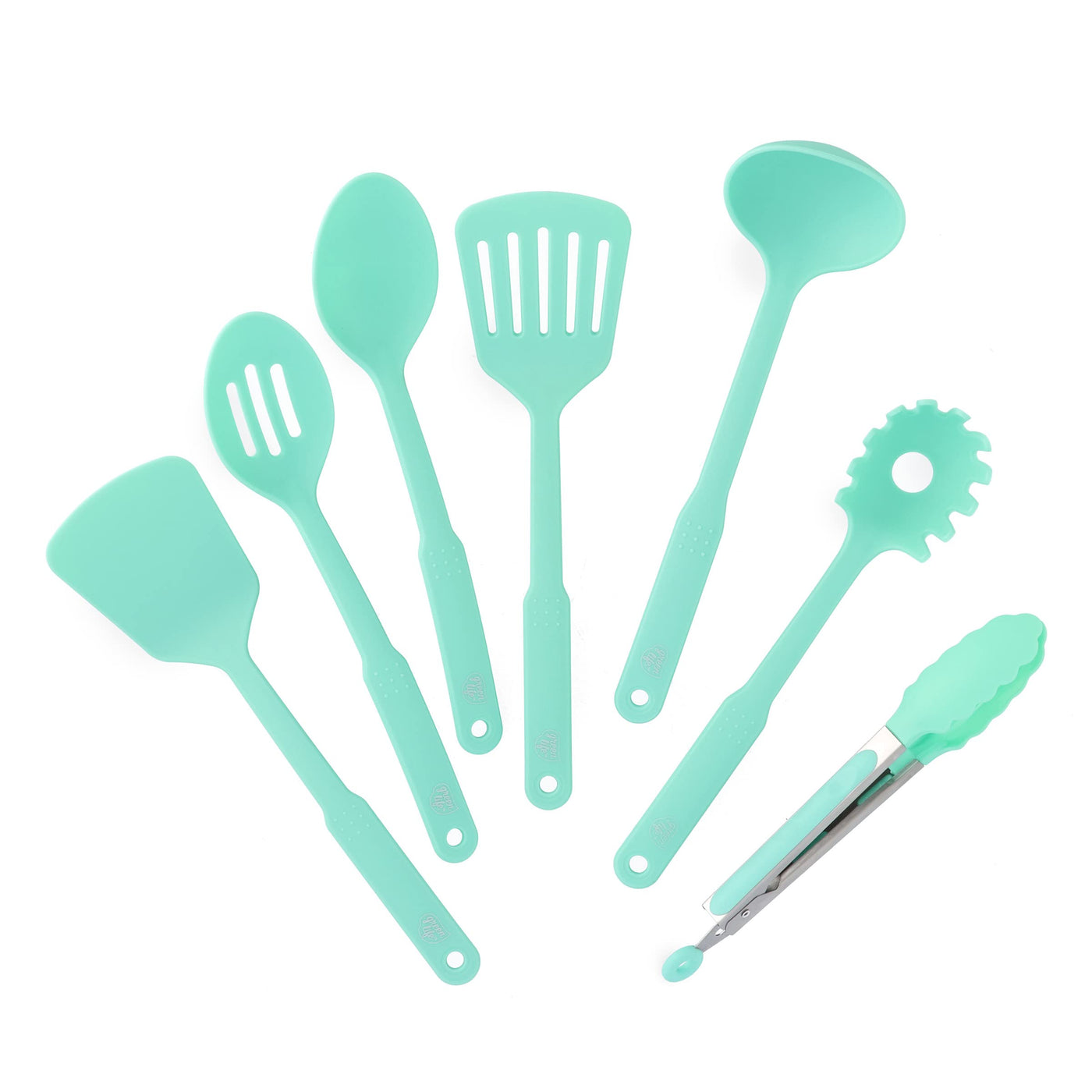 Greenlife Cooking Tools And Utensils, 7 Piece Nylon Set Including Spatulas Turner Spoons And Tongs, Dishwasher Safe, Turquoise