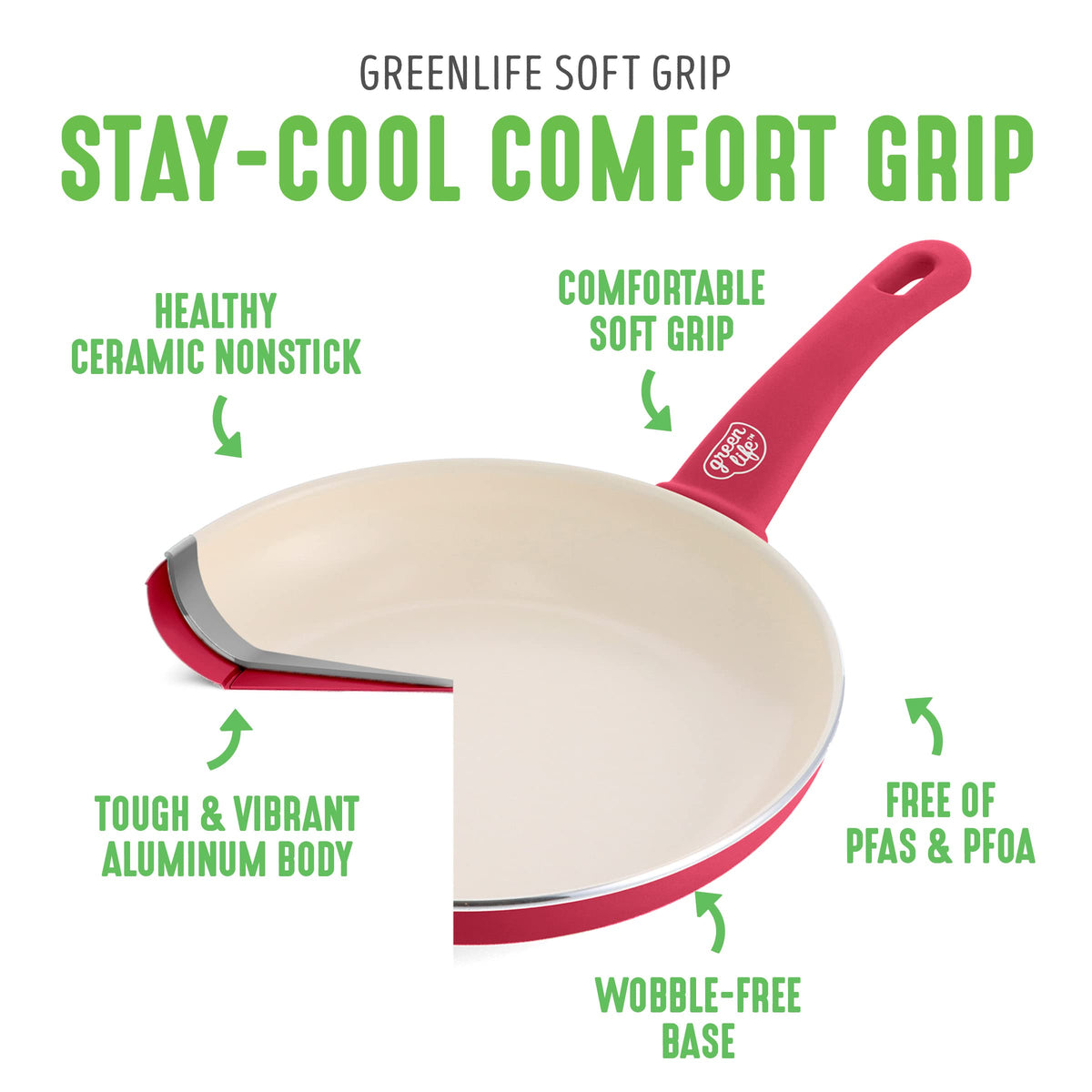 Greenlife Soft Grip Healthy Ceramic Nonstick, 1Qt And 2Qt Saucepan Pot Set With Lids, Pfas-Free, Dishwasher Safe, Red