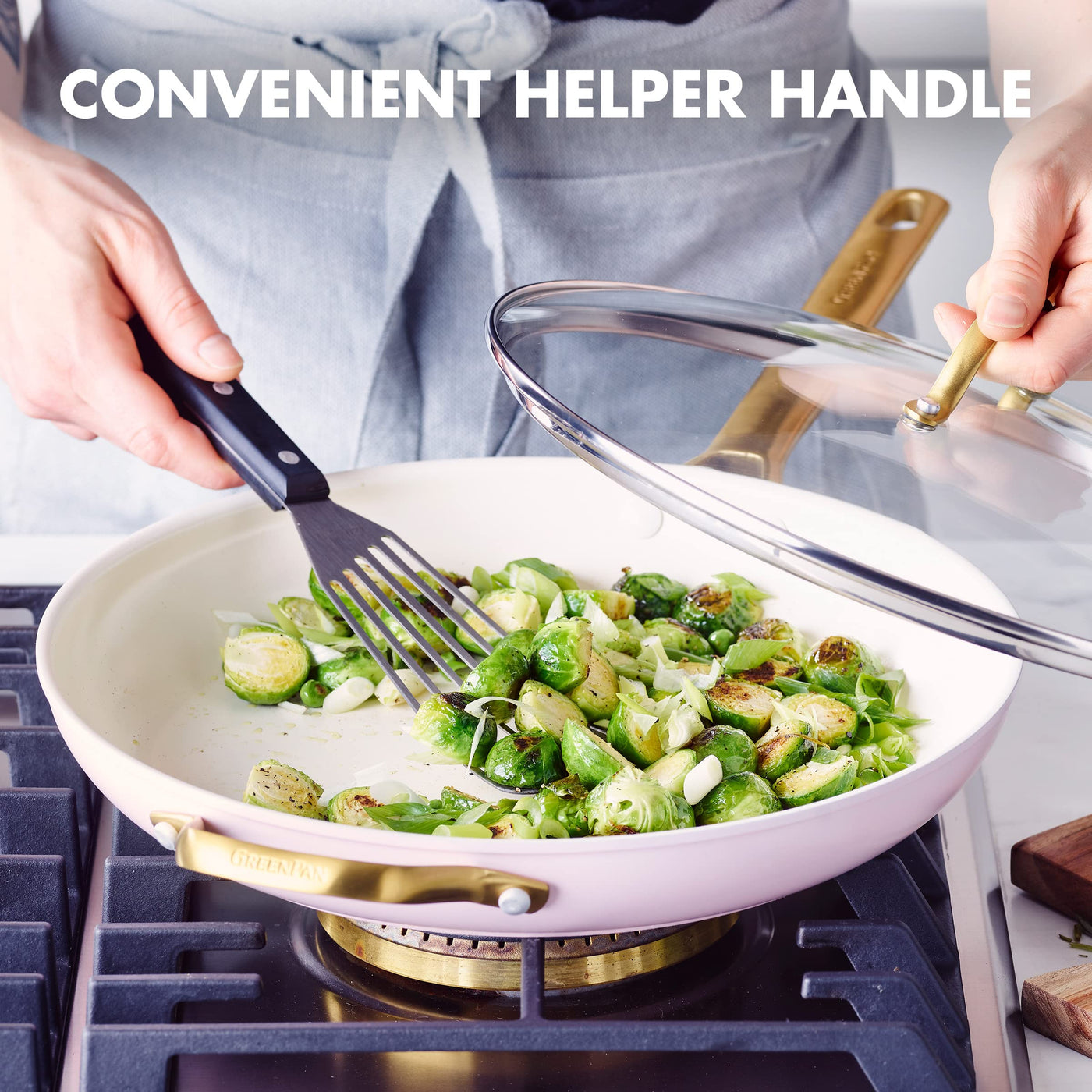 • Q: Does the GreenPan frying pan come with a lid? A: Yes, the GreenPan frying pan includes a durable glass lid that allows you to monitor your cooking.