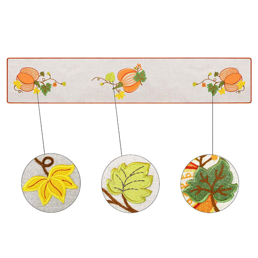 Grelucgo Halloween and Thanksgiving Holiday Table Runners, Fall Autumn Harvest Decorations, Embroidered Pumpkins, Rectangular 14