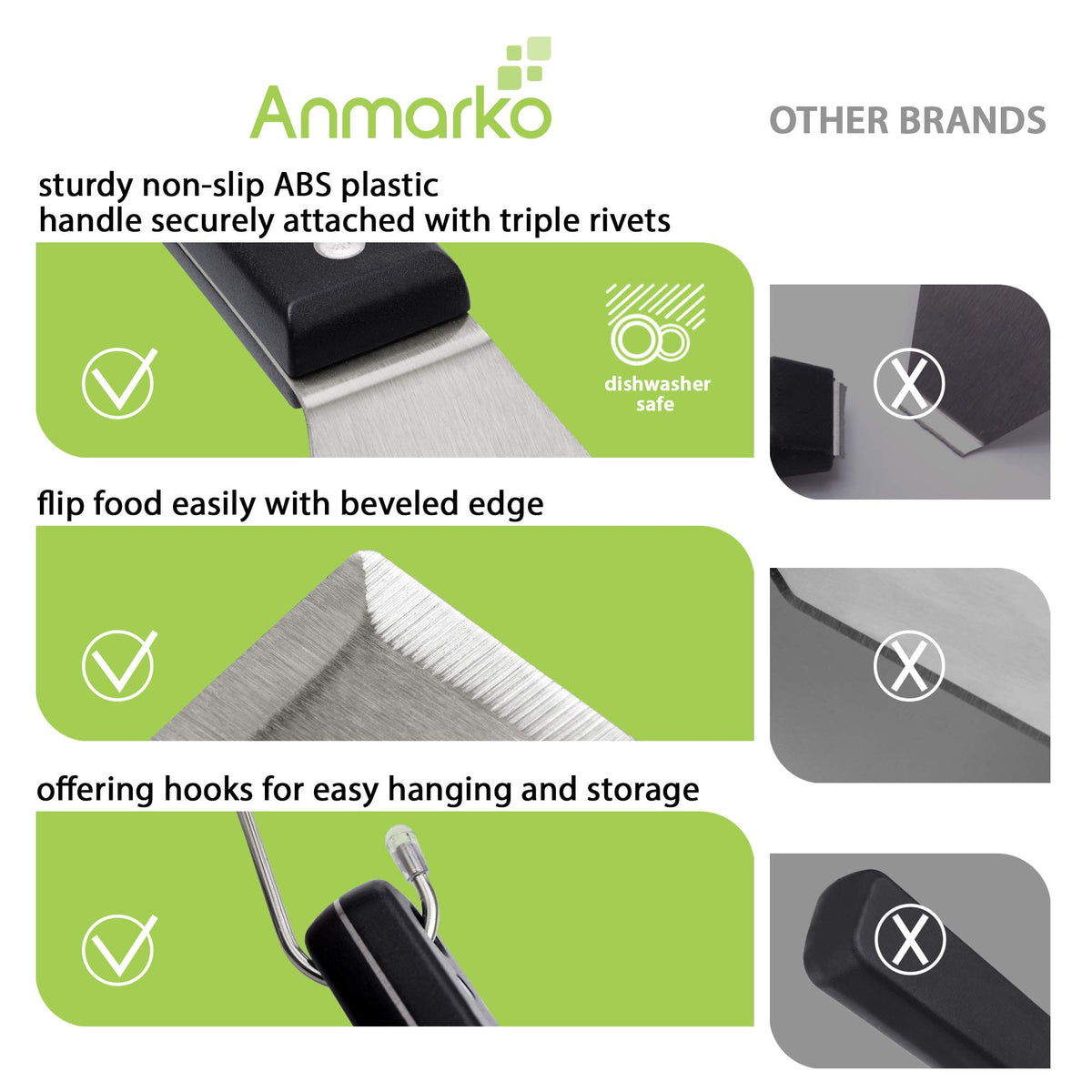 - Q: What are the dimensions of the spatulas? A: The spatulas in the set are designed in oversized professional grade dimensions suitable for various cooking tasks, although specific measurements are not provided.