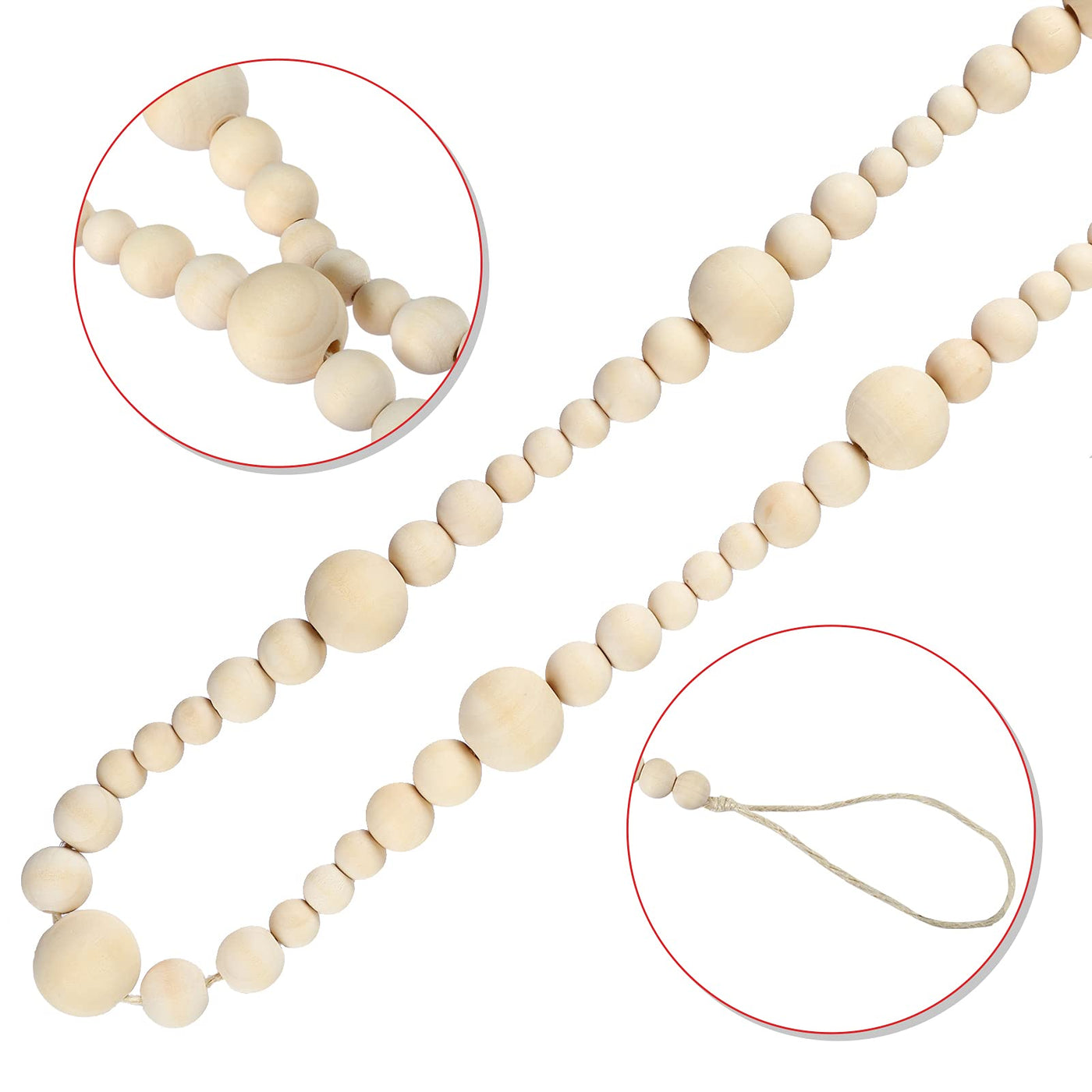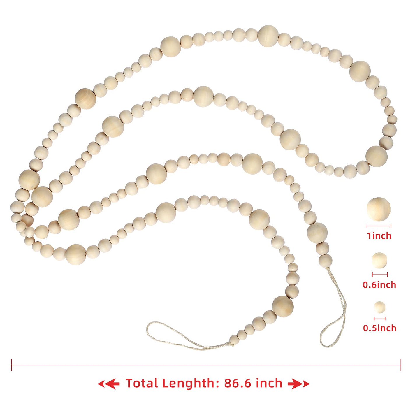 Specifications: Material: natural wood Color: natural wood color Length: 7.2 feet/86.6 inches Wooden Beads Size: 12mm, 15mm and 25mm. Applications: Daily Use: Perfect boho home modern farmhouse decor. Holiday Use: Perfect for fall holiday, thanksgiving, Hallooween, Christmas decor. Note: Due to manual measurement, please allow an error of 1~2cm. Package Included: 7.2 ft Wood Bead Garland x 1