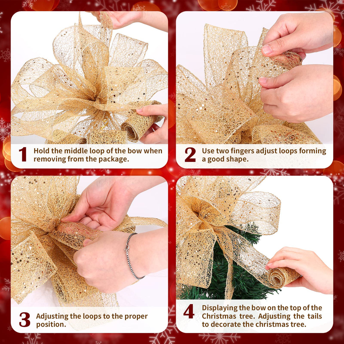 GWHOLE Gold Glitter Christmas Tree Topper Bows