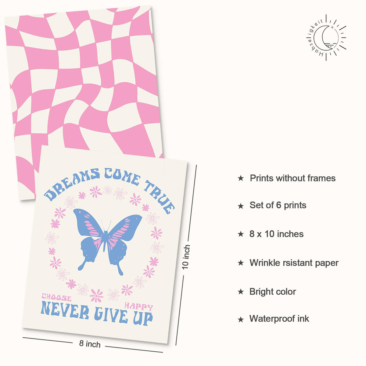 Habseligkeit Pink Wall Art Prints, Gradient Wall Posters, Buttefly Wall Art, Pink Room Decor For Grils Aesthetic Bedroom 8X10Inc