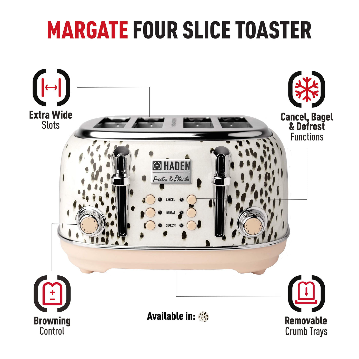 Haden 75024 4-Slice Toaster, Wide Slot With Removable Crumb Tray And Settings, White/Brown Spots/Pink
