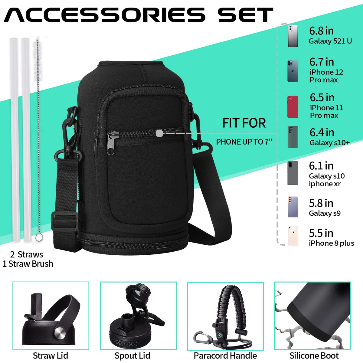 Half Gallon Insulated Water Bottle - with Straw & Spout Lid Paracord Handle & Carrier Bag Protective Cup Mat 64oz Vacuum Stainless Steel Water Bottle Metal Vacuum Flasks Keep Cold 48h Hot 24h