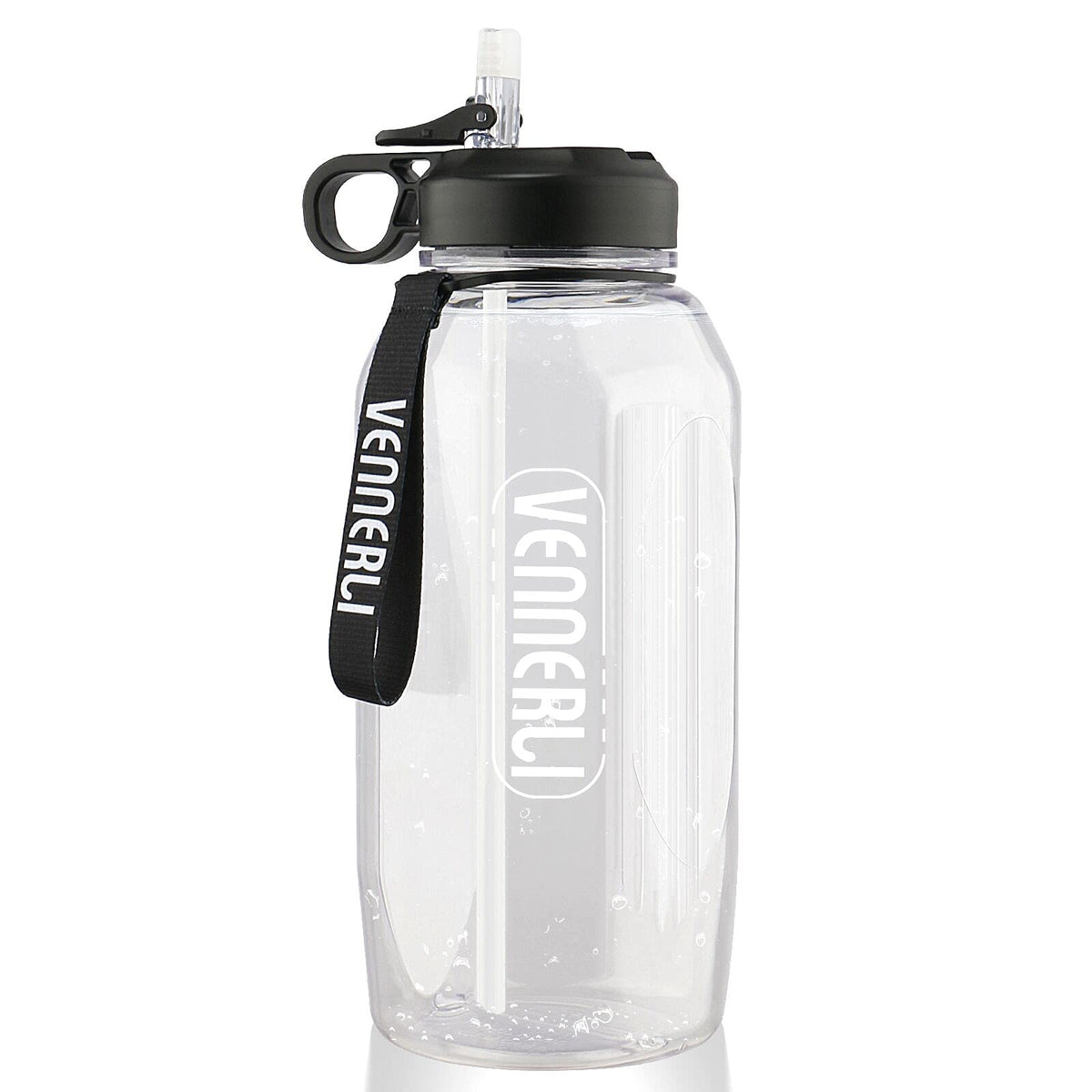 Half Gallon Water Bottle with Handle BPA Free Sports Water Bottles 74oz Large Plastic Water Jug with Straw VENNERLI 2.2L Motivational Water Bottle with Straw for Outdoor Hiking Camping Running (QL-Clear)