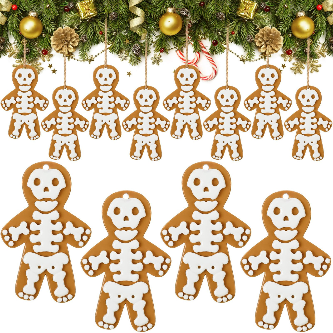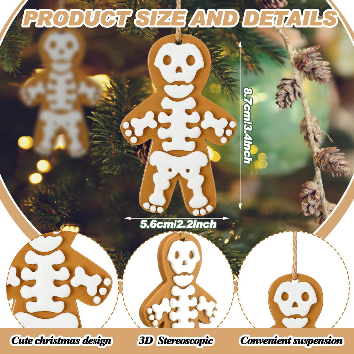 Halloscume 12 Pcs Christmas Skeleton Ornaments for Tree Resin Gingerbread Skull Hanging Winter Xmas Cute Ornaments with Ropes fo