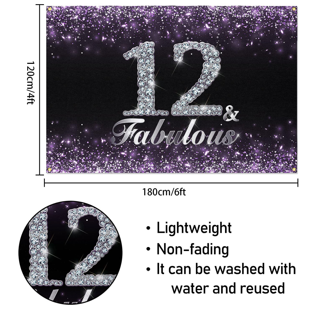 Hamigar 6X4Ft Happy 12Th Birthday Banner Backdrop - 12 & Fabulous Birthday Decorations Party Supplies For Girls - Purple